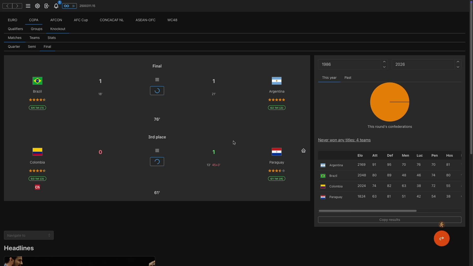 Simulate over 40 events, including the World Cup and continental cups. Enjoy high replayability with 220+ national teams evolving dynamically over the years. Use powerful in-game editors to create new teams and edit tournament formats, while tracking detailed statistics for every team and event!
