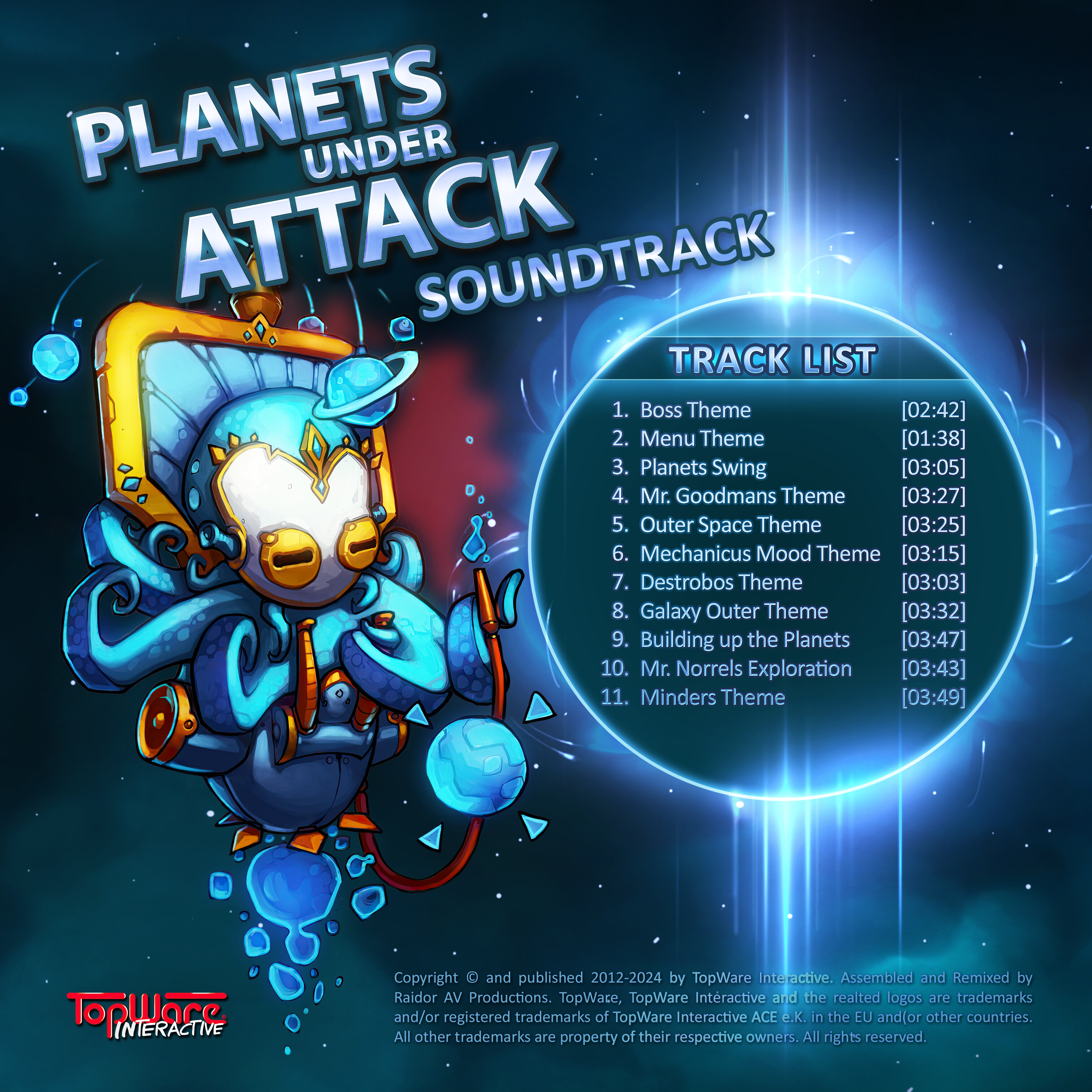 Enjoy Planets under Attack world apart from visuals with the Soundtrack! Experience in 11 unique tracks over 35 minutes enthralling acoustic moments, away from your PC, too.