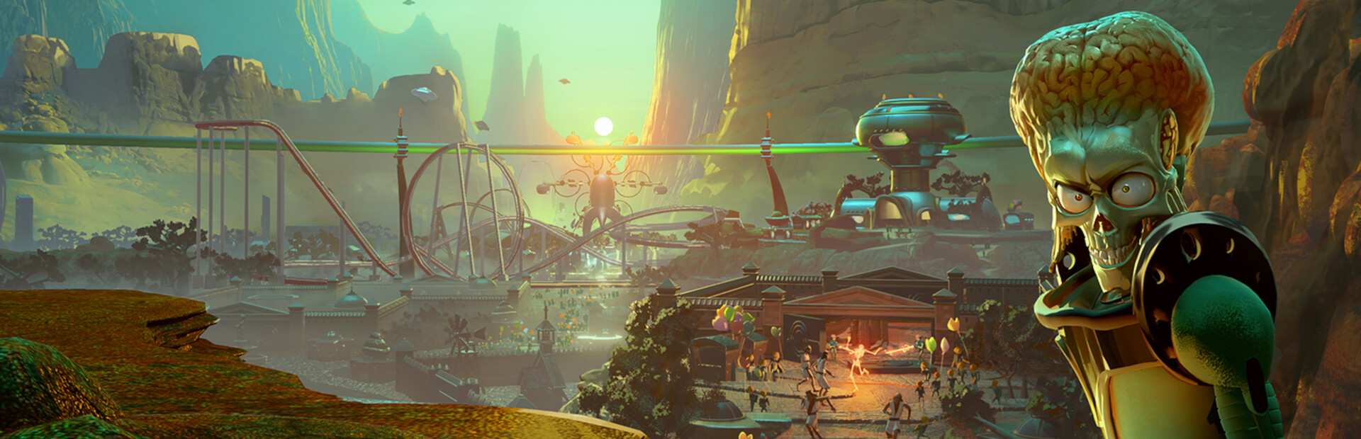 Mars Attracts is a park management sim set in the iconic universe of Mars Attacks™. Play as the devious Martians as you construct detailed enclosures, manage staff, and most importantly - abduct and experiment on humans for the entertainment of your Martian guests!