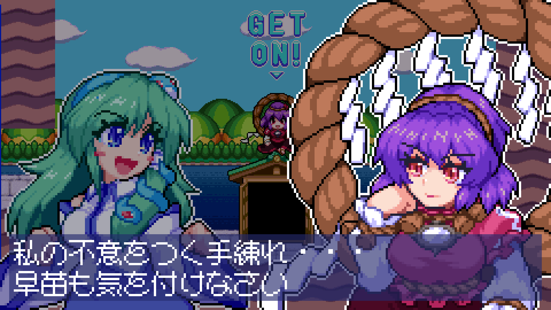 "SANAE's Sylphid Breeze" is 2D Platformer game with cute pixelart. The main character in this game, SANAE KOCHIYA is a character from the "Touhou Project". With her new ability “SPELL SPOILER, she inhales enemies and imitates their ability. Behold! SANAE's miracle adventure!!