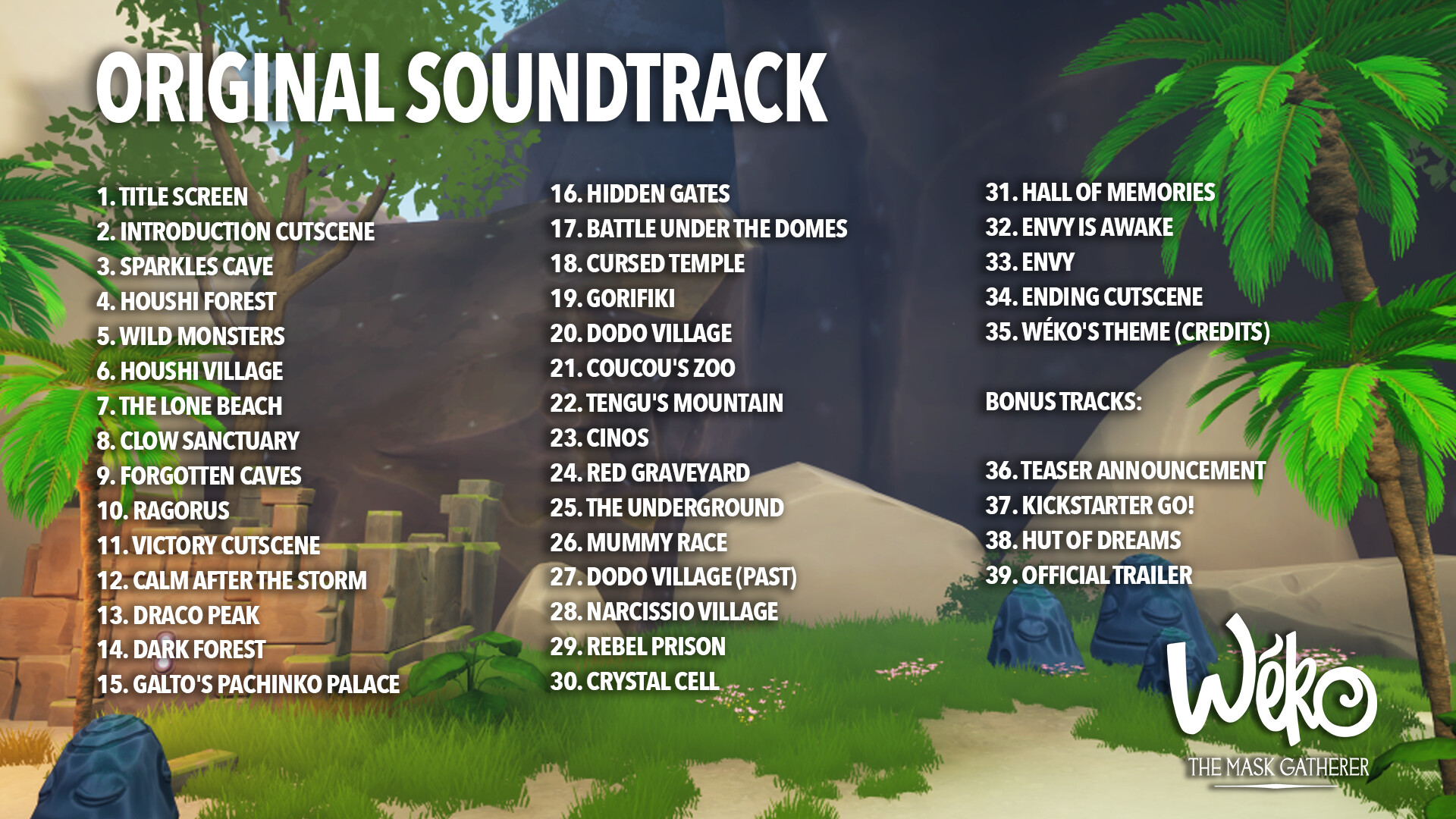 Immerse yourself in the captivating world of Wéko The Mask Gatherer with the enchanting original soundtrack! Featuring 39 unique tracks, this collection spans 1 hour and 45 minutes of atmospheric melodies, epic themes, and memorable moments that bring the adventure to life.