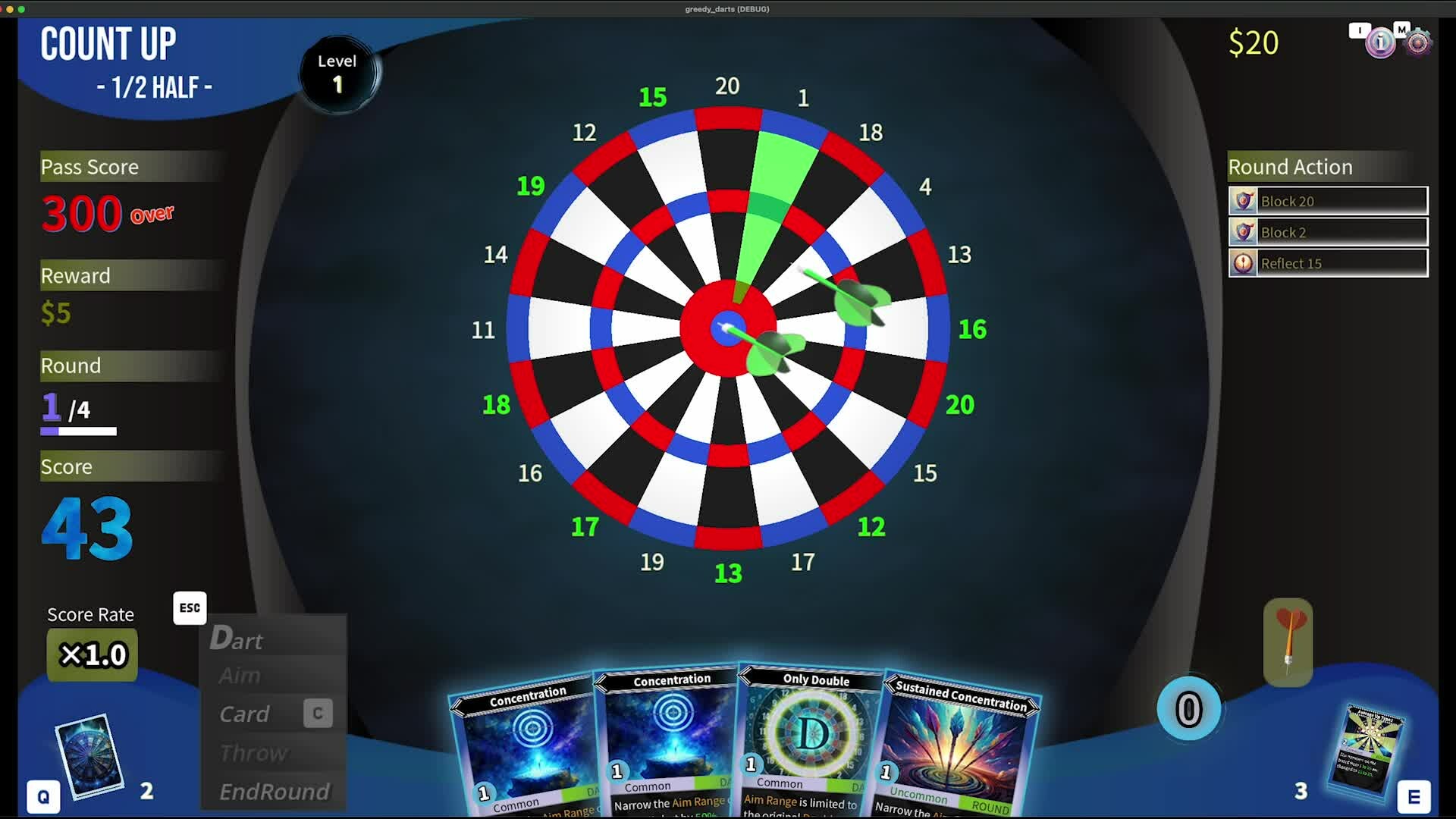 Darts roguelike game. Greedy Darts is a deckbuilder where you clear various darts games using enhanced darts and modified rules.