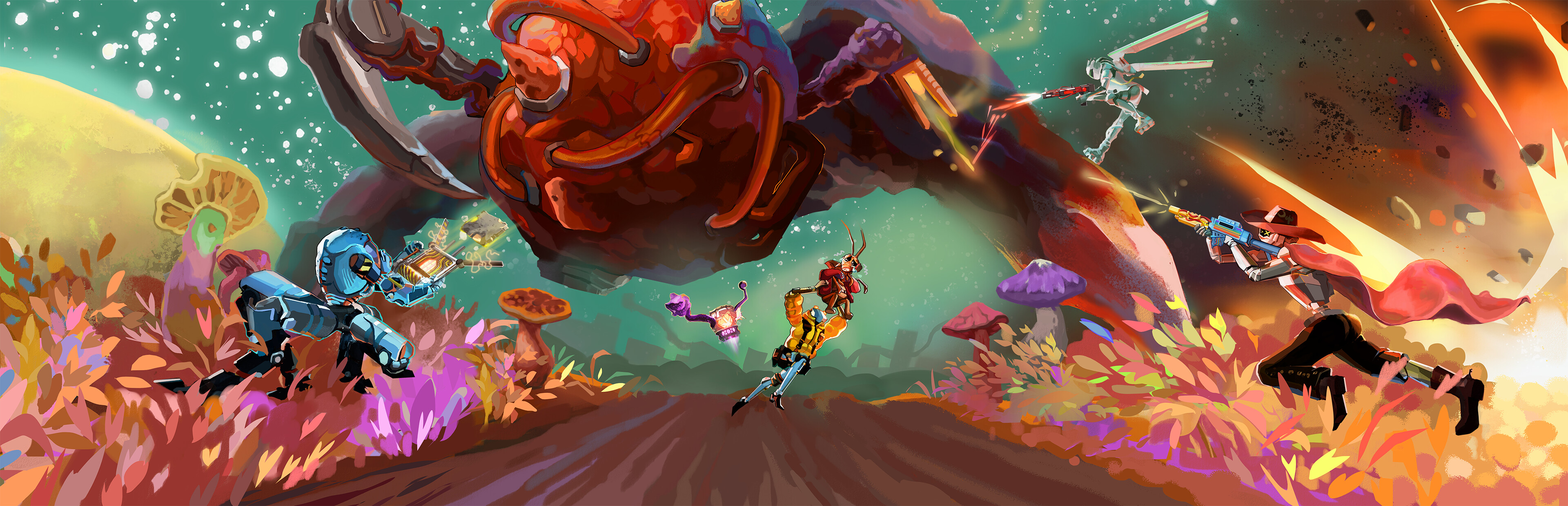 Join the New Atlas Hazard Crew, a squad of odd robots with unique gadgets, and rid the galaxy of a deadly fungal menace in this hyper-customisable mission-based co-op shooter.