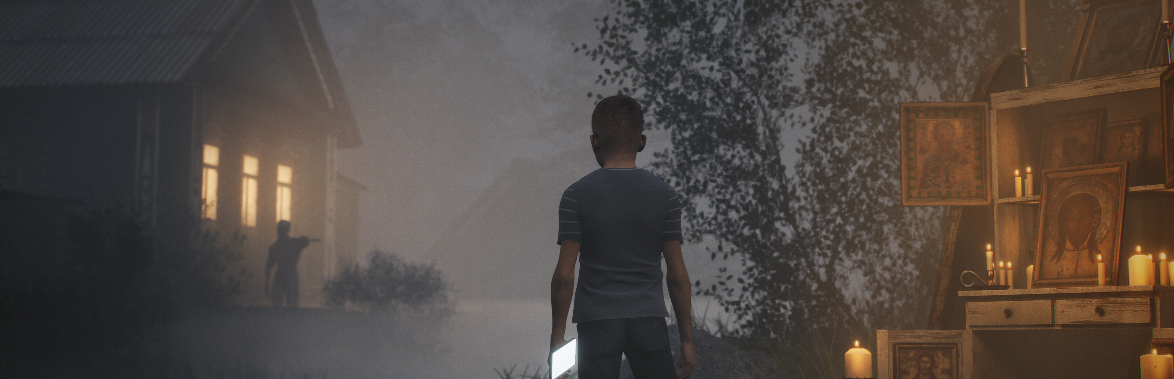 Your phone is the key to solving the mystery. Scan QR codes, they hold hidden clues. Find herbs for the infusion to save your grandfather. But be careful. A fog has engulfed the village, and a monster with a crossbow for a hand roams within. You are only safe at the altar. Why is it chasing you?