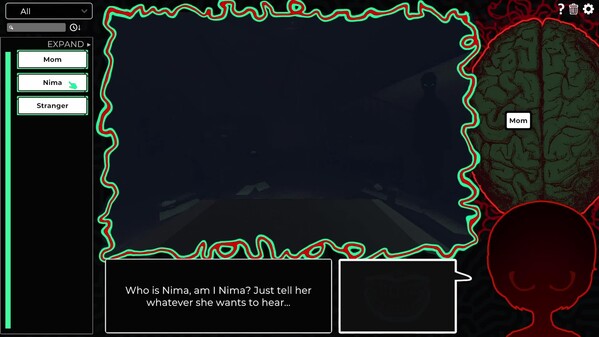 Am I Nima is a psychological-horror game where you must convince your mom that you really are her daughter. Combine words together in your brain and use them to talk. Get her to trust you.
