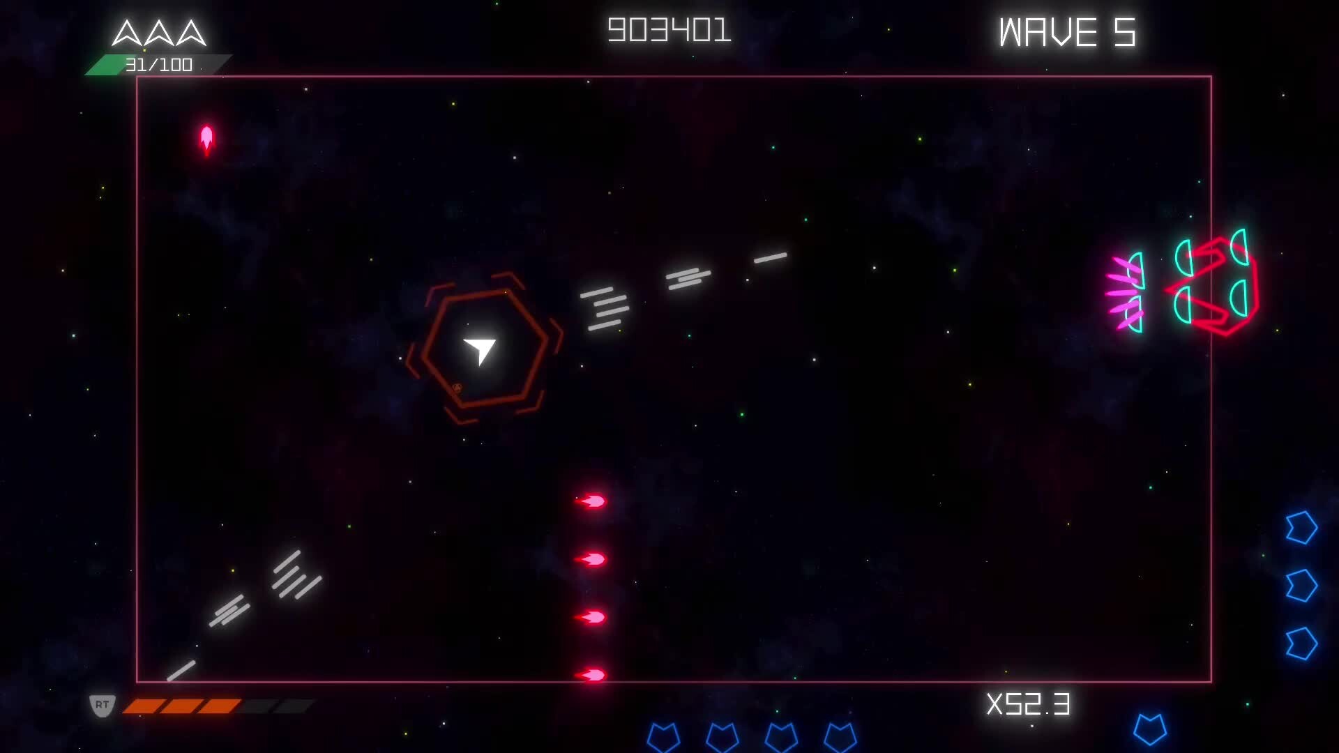 Shapefighter is an arcade-style, twin-stick shooter where you blast through 5 stages of pure shape onslaught. Shoot and dodge shapes that will swarm you in a ever-changing formations. Defeat all 5 bosses and take down the shape invasion!