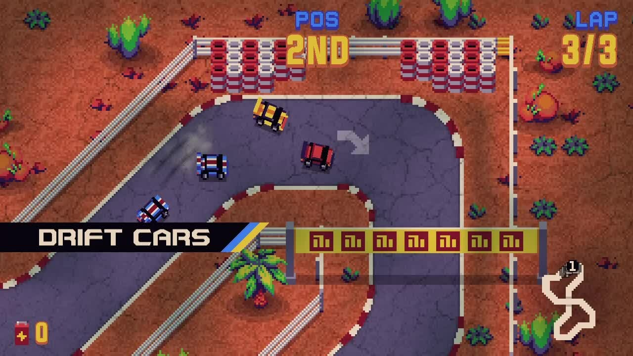 A nostalgic top-down racing game with vibrant pixel art. Choose from unique vehicles, conquer constrasting tracks, and master different modes. With intuitive arcade controls, experience high-speed excitement and become the ultimate racing champion in this retro race adventure!