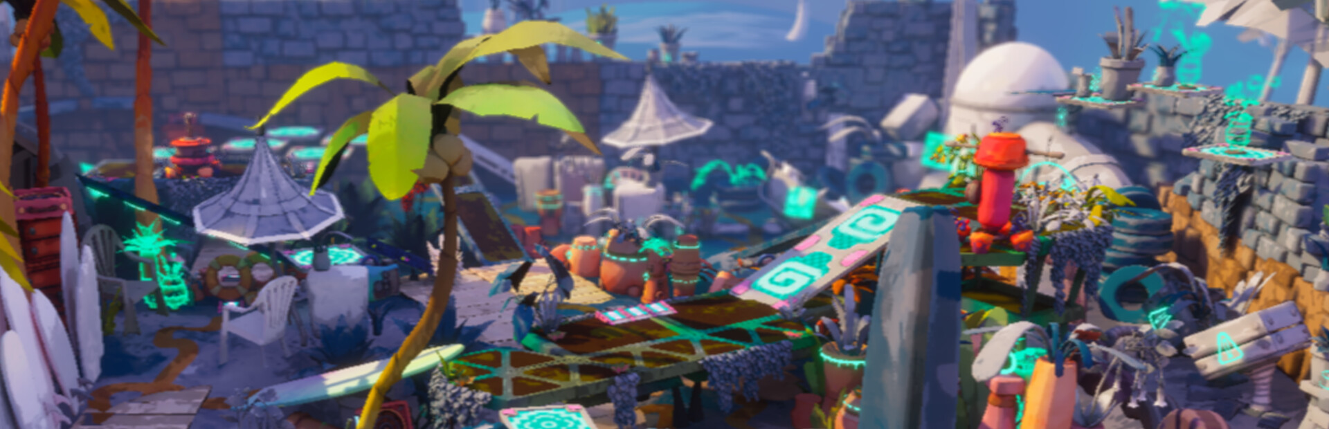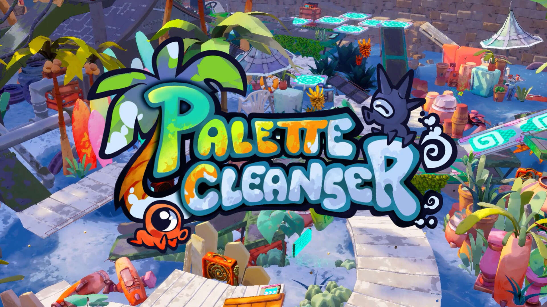 Jump, dash and slide through a futuristic garden in Palette Cleanser, cute 3D platformer focused on smooth movement and an optimistic vibe! Control a tiny robot trying to restore the color palette of its garden. Capture the alien invaders to activate paint sprinklers and make the garden alive again.