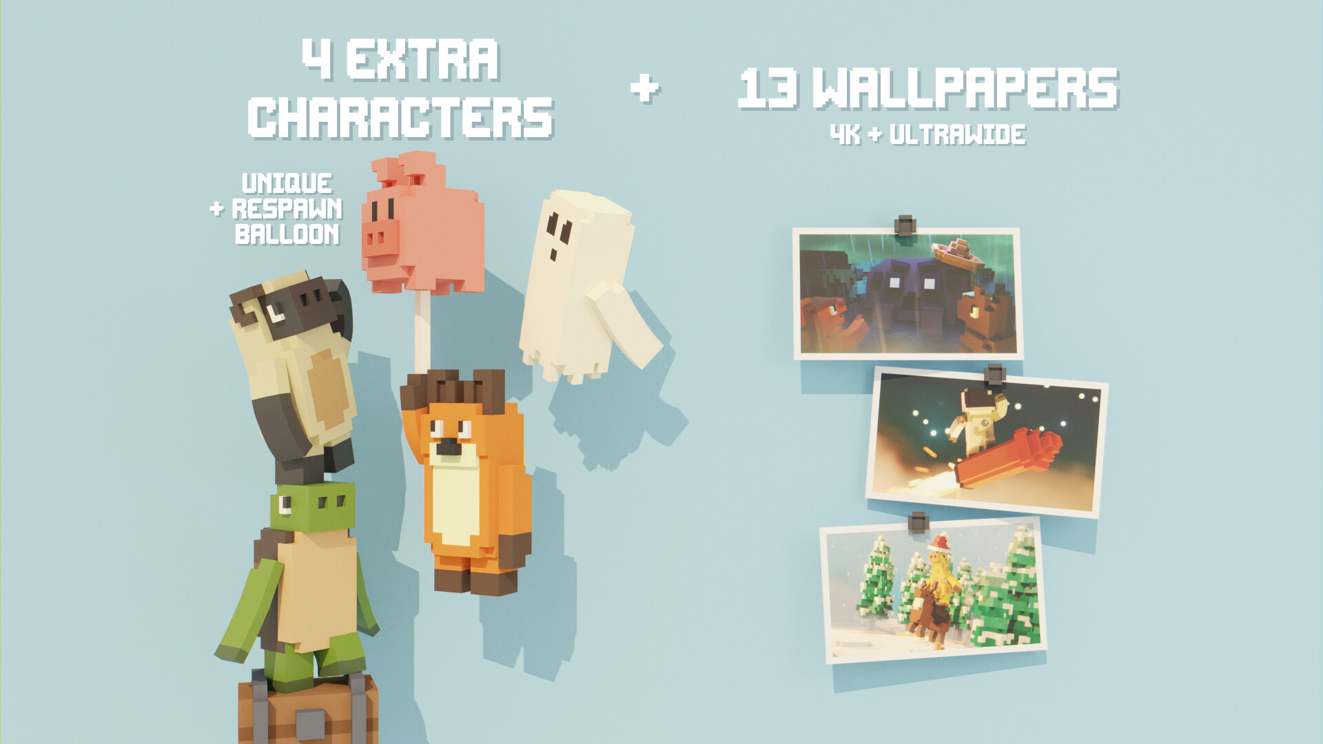 The Unrailed 2: Back on Track – Supporter Pack gives you access to exclusive skins, wallpapers and a special respawn balloon. And it even helps the development of Unrailed 2 at the same time!