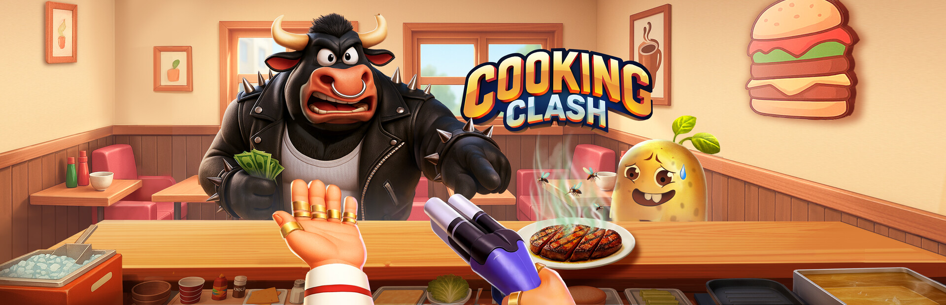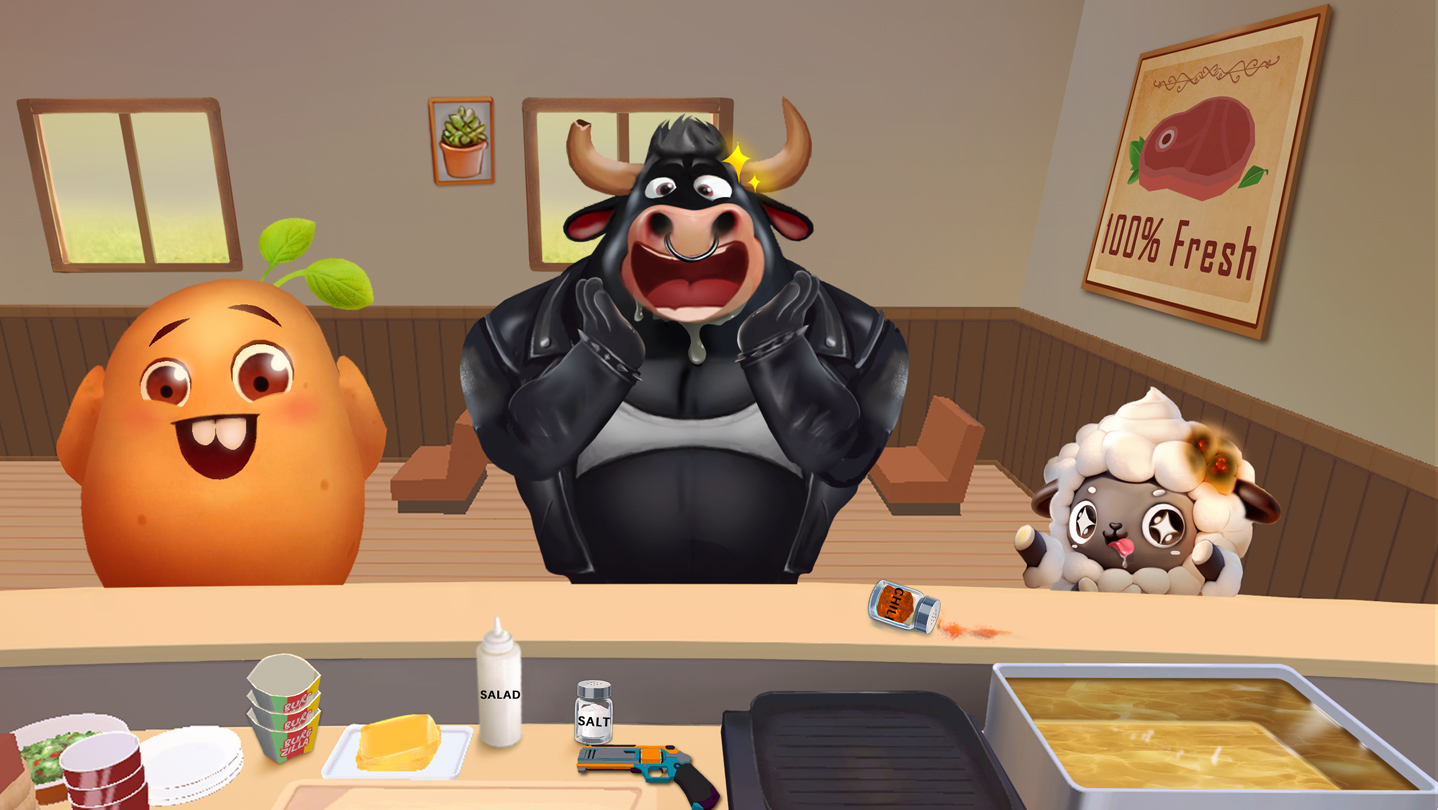 Welcome to Cooking Clash, the VR restaurant game that lets you unleash your creativity! Run your fast-food spot, delighting both human and animal guests with your culinary flair. Utilize endless ingredient combinations to keep guests pleased and beware of cunning customers who might rob your tips!