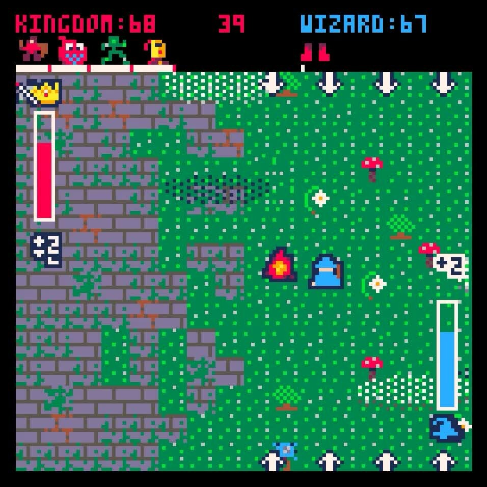 Mouse faces off against Keyboard in this fun, simple versus game! Play as Wizard or Kingdom - send your armies of knights and minions to get past the wizard, or take up the staff, collecting power-ups and summoning fire magic to defend your home!