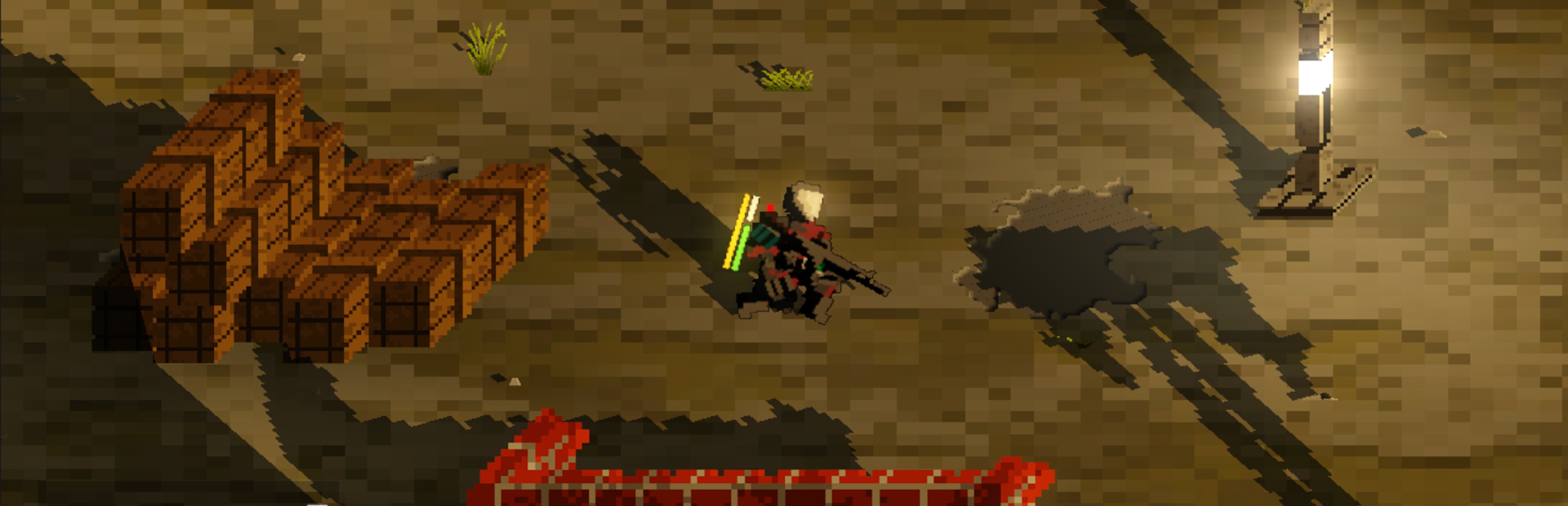 This is a horizontal 2.5D pixel shooting game. Players will play an independent mercenary to perform bounty missions in enemy war zones, repair their own fortresses, and create more powerful combat protocols and equipment.