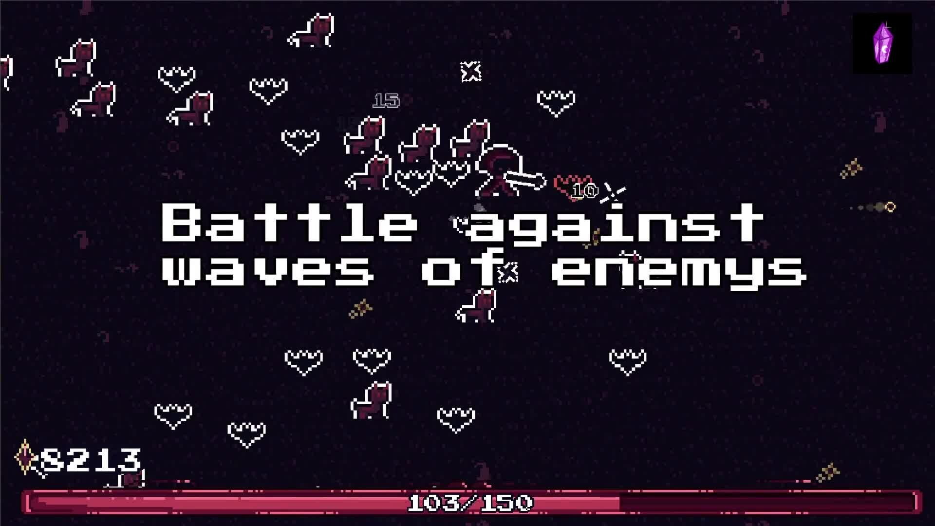 In this action roguelite demo, play up to wave 20 with 2 staffs, 1 skin, 5 enemies, and 1 boss. Upgrades are limited, and the infinite mode is included.