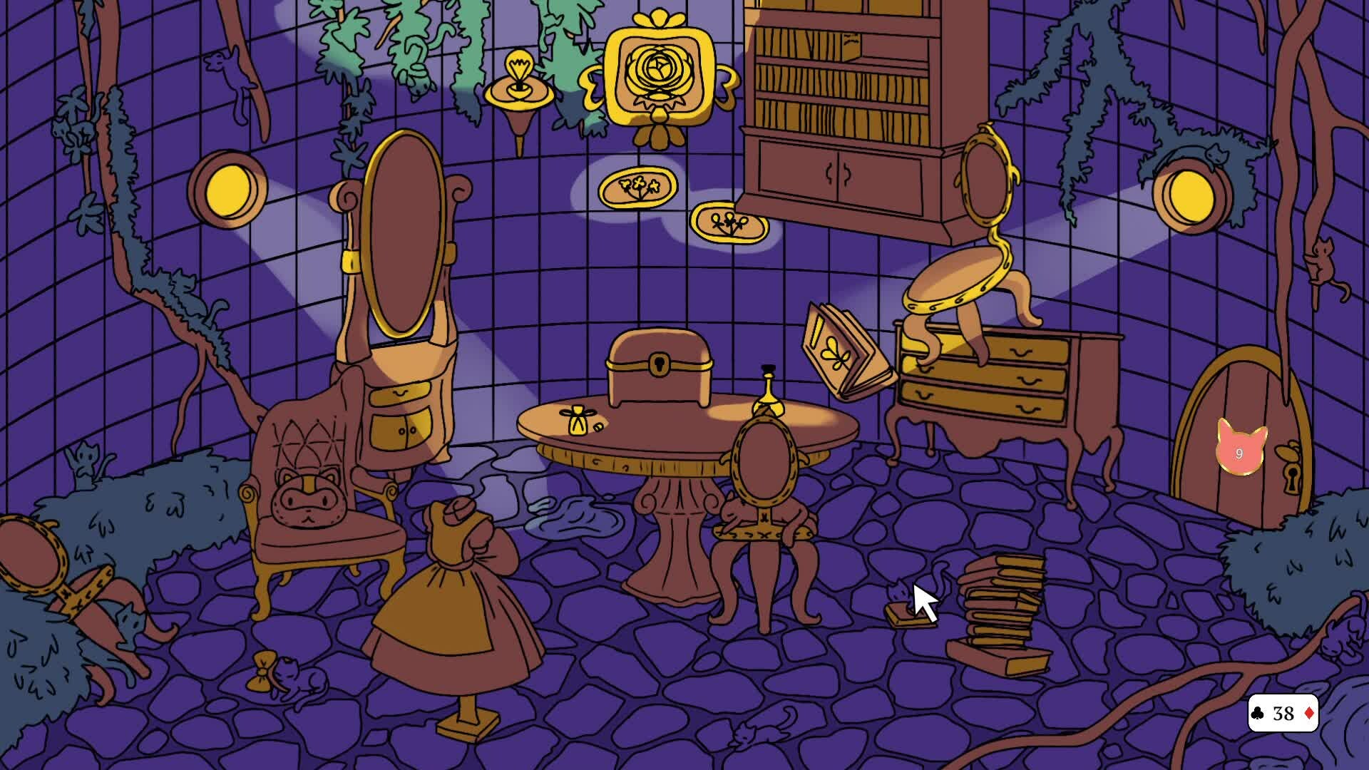 The Queen of Hearts had a fit of rage after the Cheshire Cat refused to be her pet and ordered the capture of all the cats in Wonderland. Find them before her and prevent anything bad from happening.