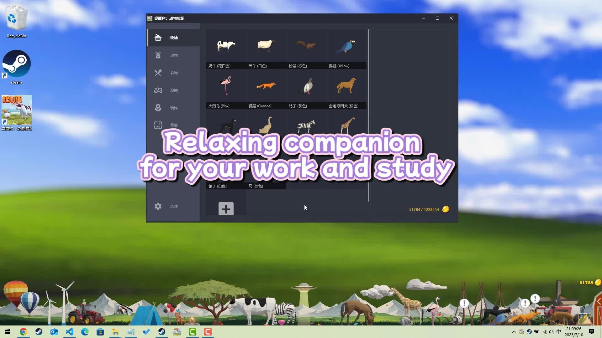 A Low Poly stylized idle-pasture simulator designed to sit at the bottom of your screen allowing you to work on other tasks while caring for your pasture and animals!