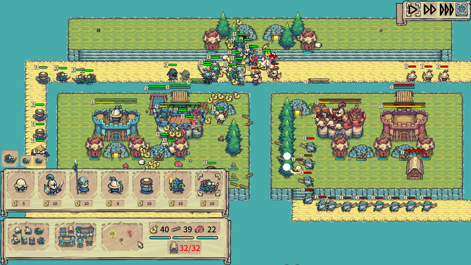 RTS, but the soldiers will act automatically: Each soldier has different characteristics/attribute values/action methods. Choose the appropriate soldiers and buildings according to the battlefield situation, and destroy the opponent's castle only through your strategy rather than operation!