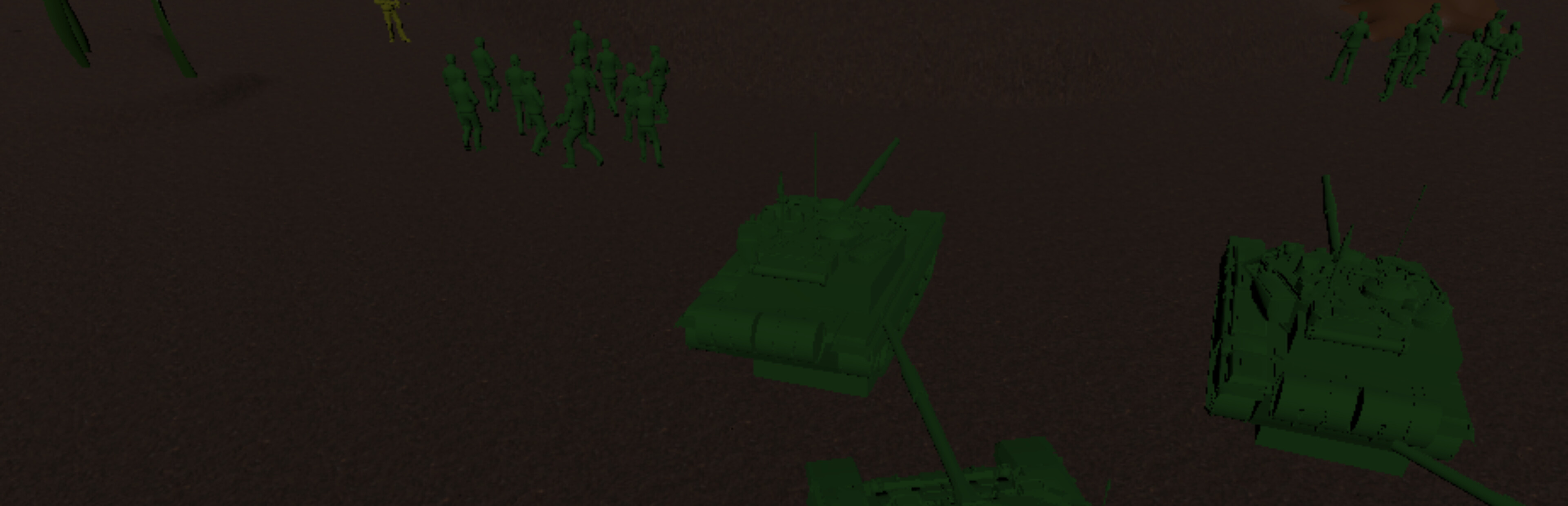 Wardoll is wargame campaign that you play as a doll on a commander vs commander game mode. Build, spawn toy soldiers and send them to battle! In a top down perspective you can experience a backyard battle with riflemans, tanks and AT but also your doll has a special gun that you can use.