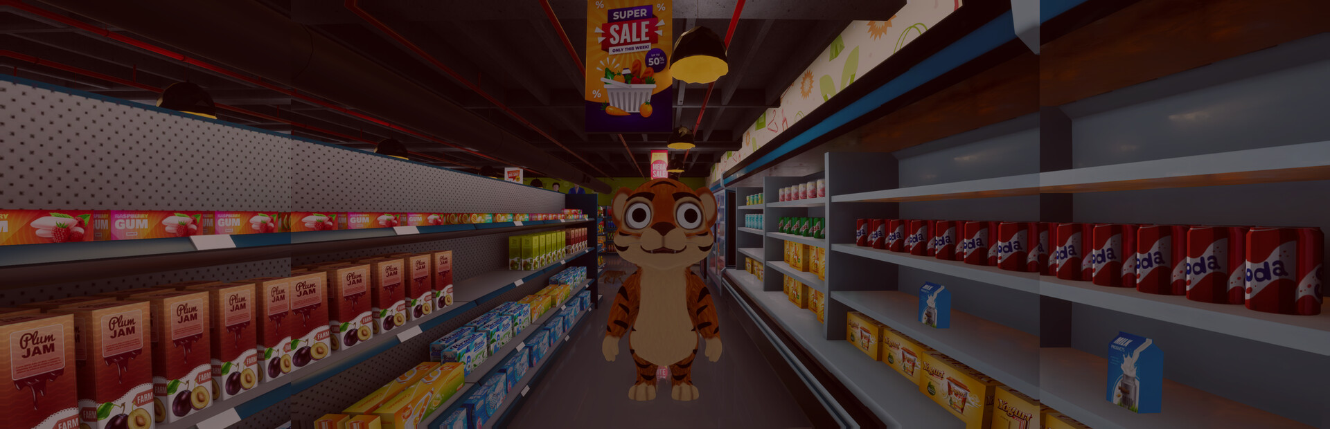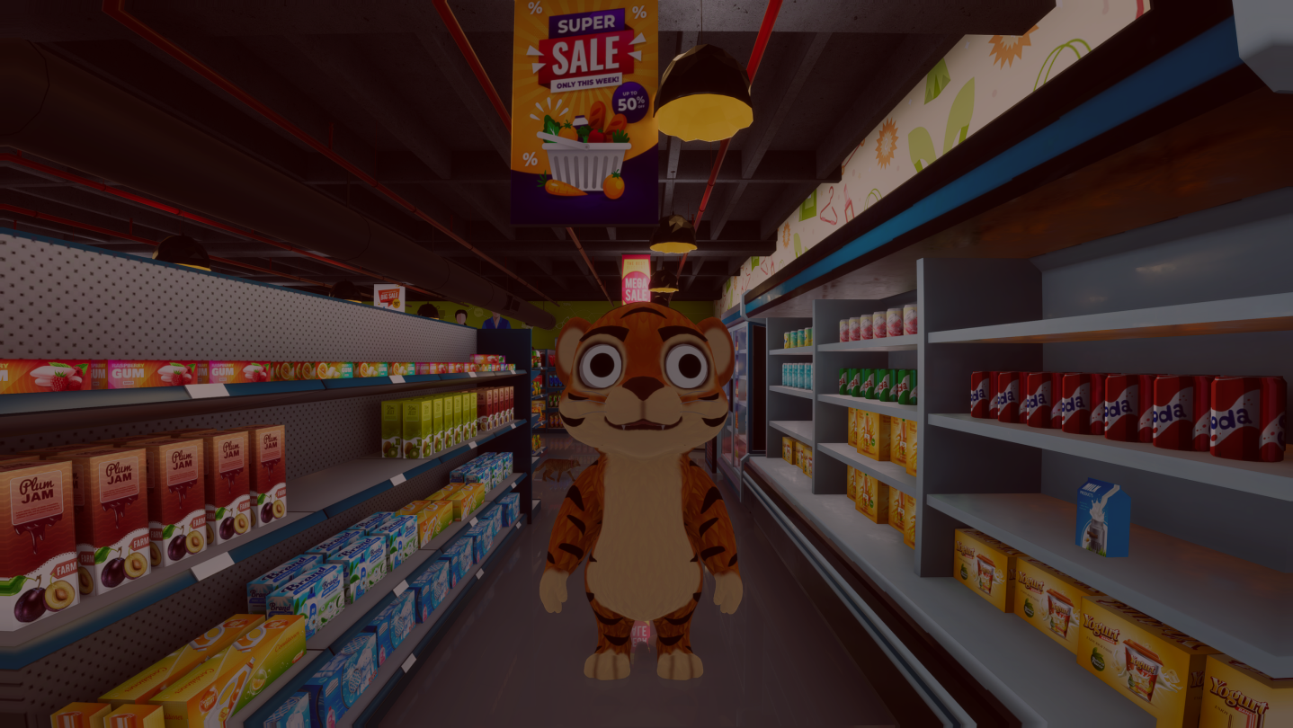 You are a father on a quest for 8 milk cartons. Observe your surroundings carefully to pick up and check out your milk before returning to your family at last.