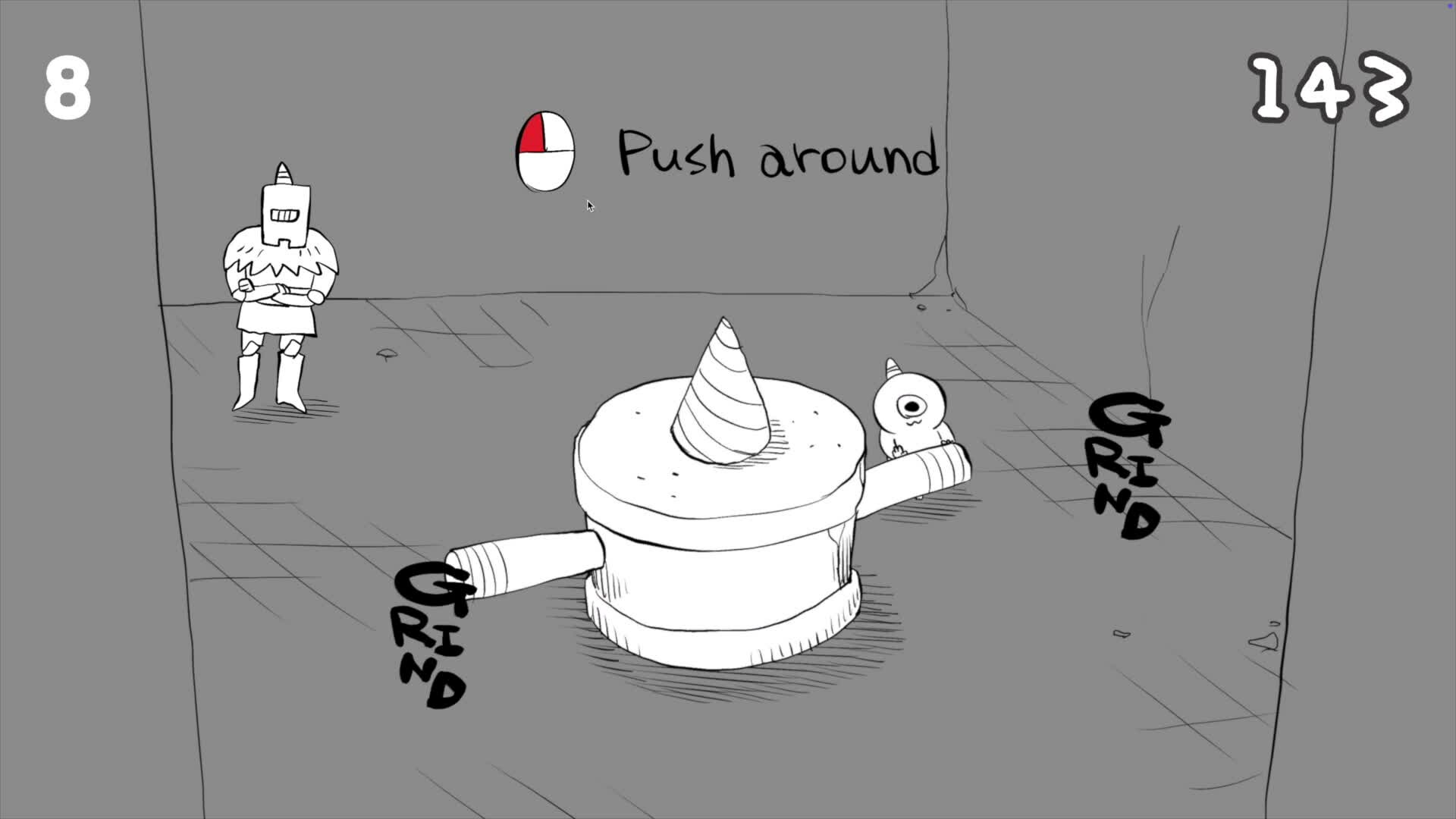 A 2D side-scrolling action game with hand-drawn graphics and a fun, surreal world view.