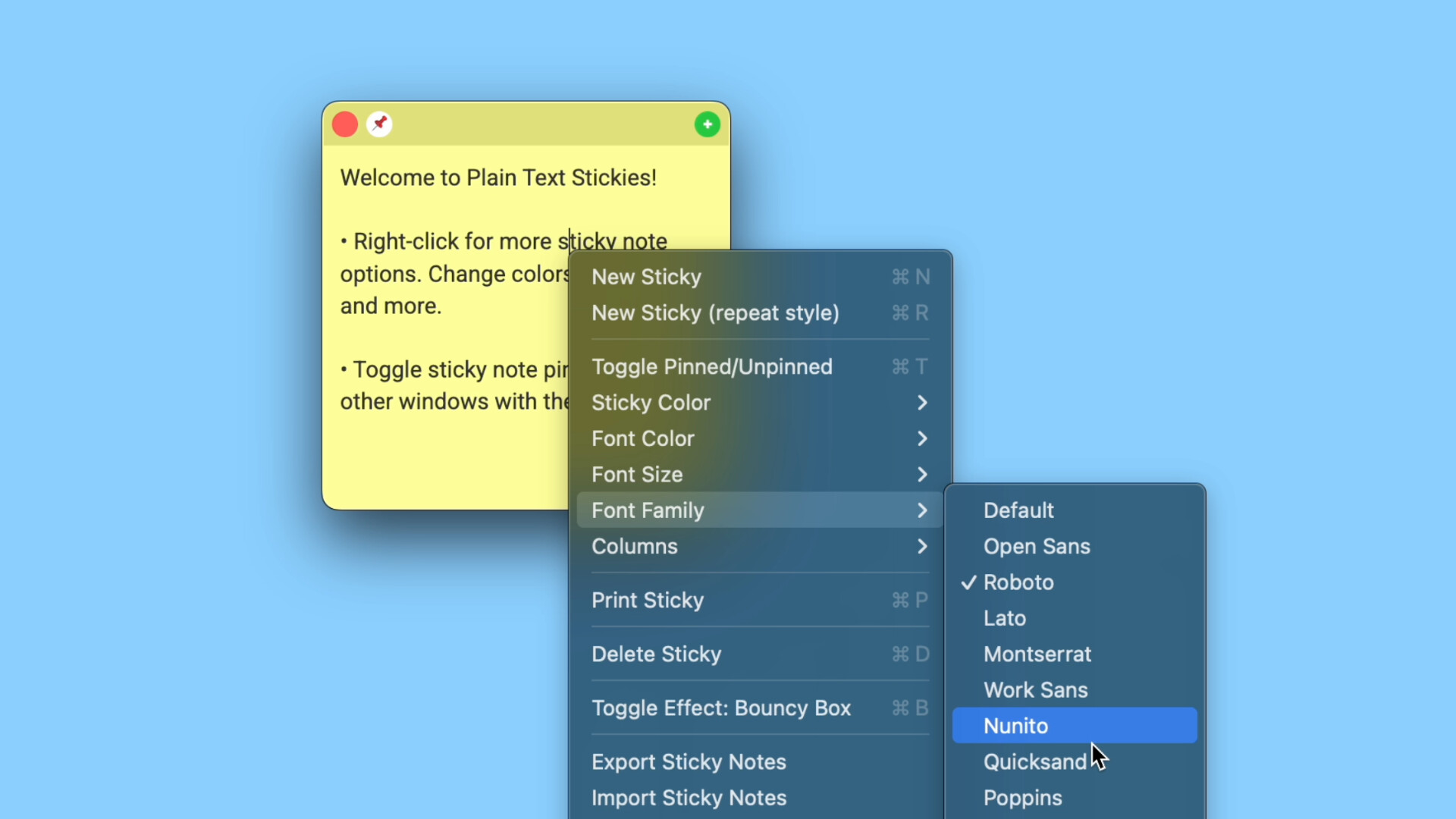 Simple, powerful sticky notes. Create clean, customizable notes with columns, colors, effects, and shortcuts. Pin key notes and organize your desktop your way—without the clutter of rich text formatting.
