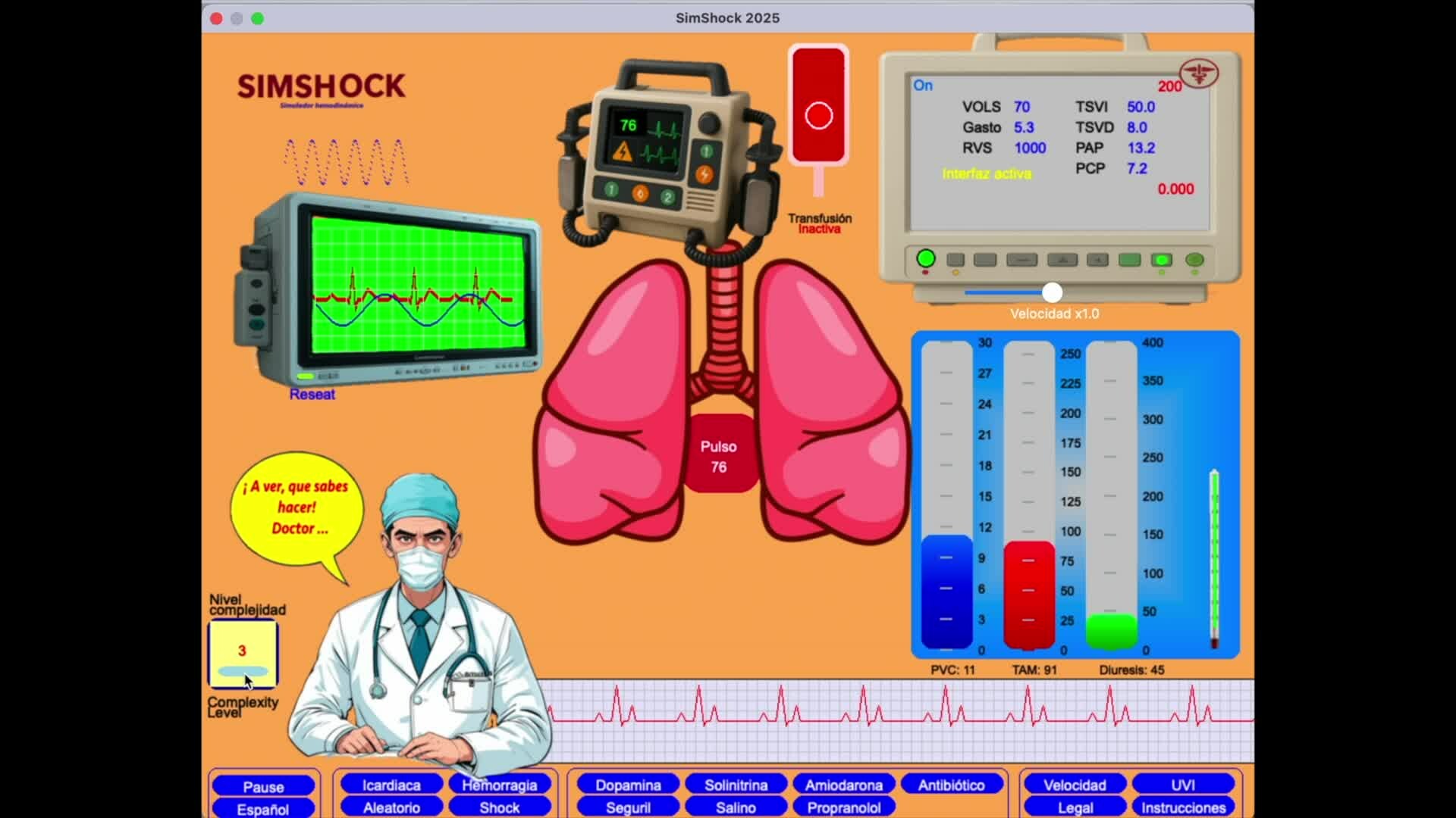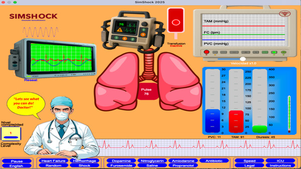 SimShock2025 is a free, bilingual (EN/ES) hemodynamic shock simulator. Treat cardiogenic, hemorrhagic, and septic shock using real drugs and interventions. Written in PureBasic, available for Mac and Windows. Apple-signed and notarized.
