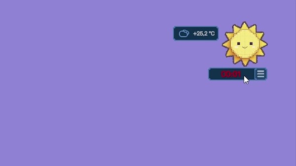 "Soluna's Mood" - a cute weather widget with personality! Sol & Luna react to weather and your clicks. Collect accessories and enjoy their emotions. Lightweight with transparency controls.