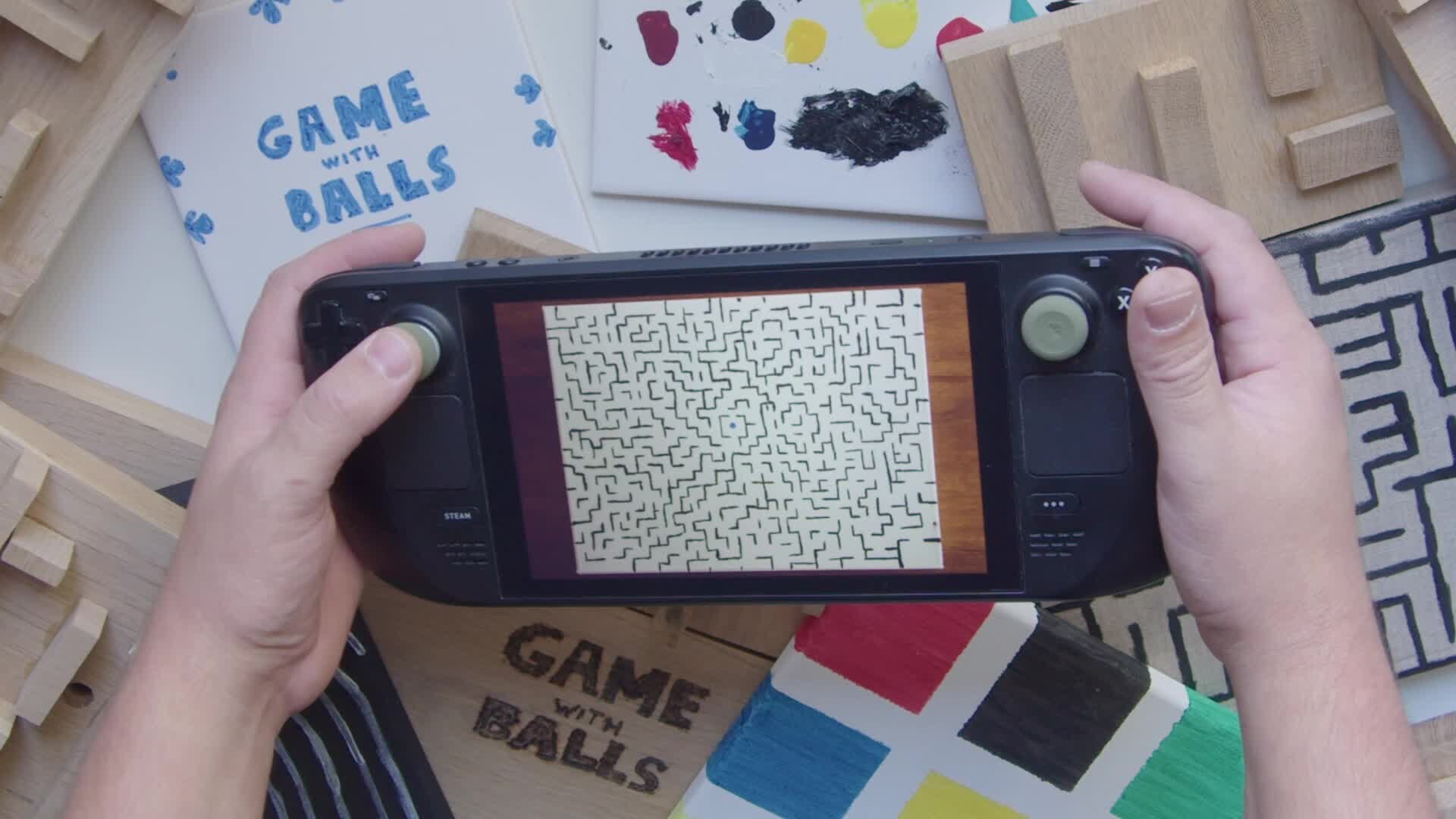 Game With Balls! Move the Steam Deck to navigate through handcrafted mazes.