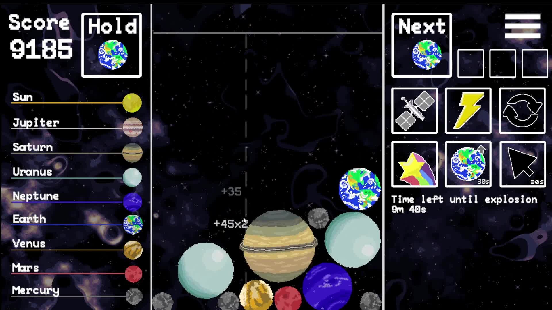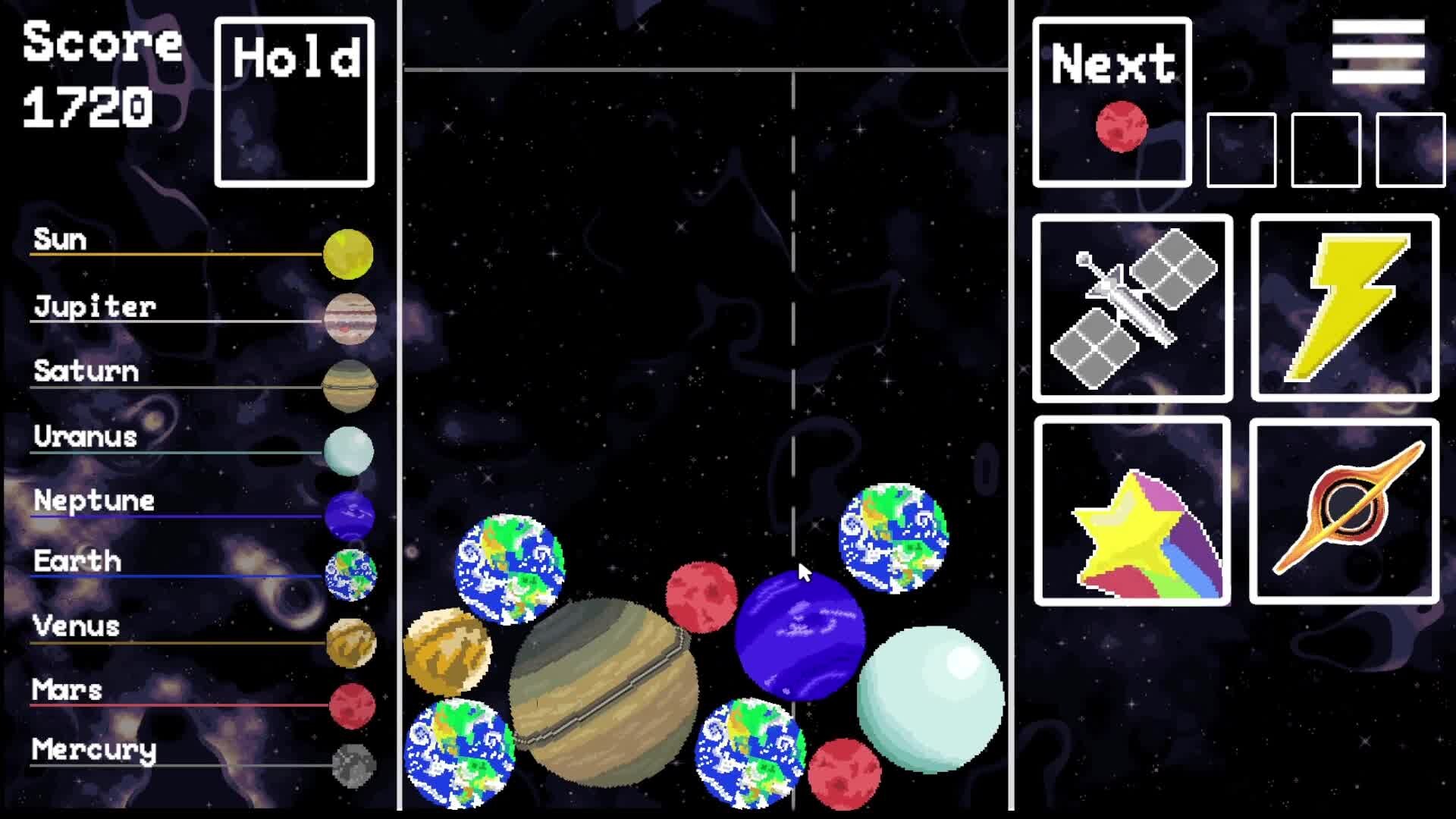 Drop and merge planets to create your ultimate galaxy in this space-themed puzzle game. Compete in the leaderboard with unique abilities and planets, and play your way with normal, vanilla and chaos modes. But always make sure your planets don't go over the limit.