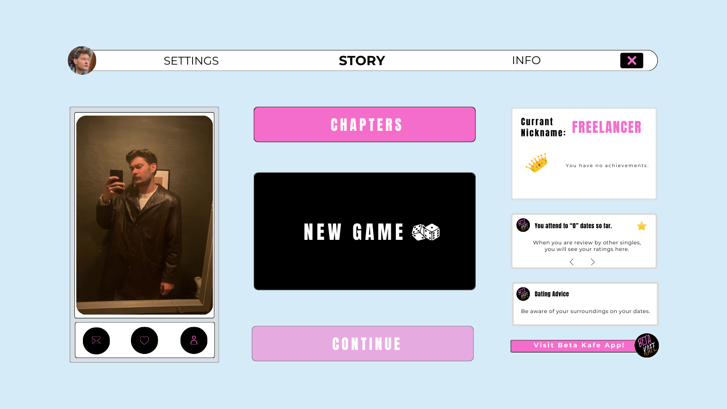 Think Sheldon and Barney — but our hero is dumber, hornier, and completely under your control. Beta Kafe is a raw dating simulator where every choice shapes his story. Funny, messy, and sometimes brutal — with 35+ unique endings waiting for you to write.