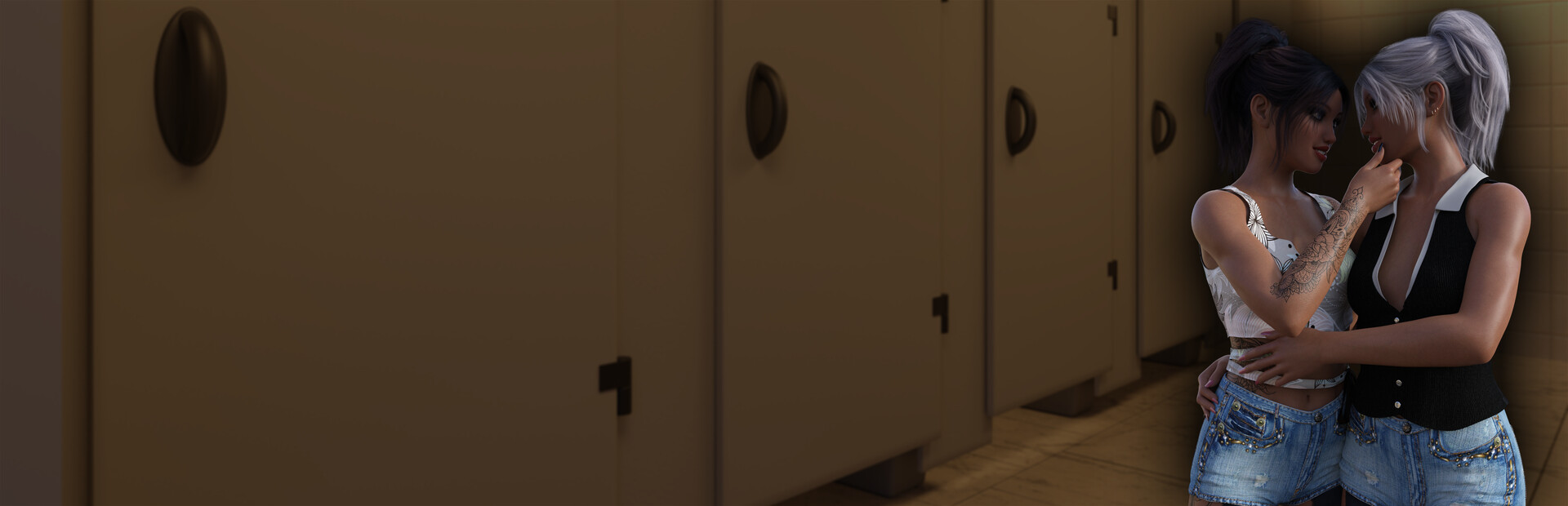 An interactive sex game with juicy animations and graphics. A lucky guy bumps into two attractive girls, fooling around in the restroom. This quickly escalates into a threesome between them.