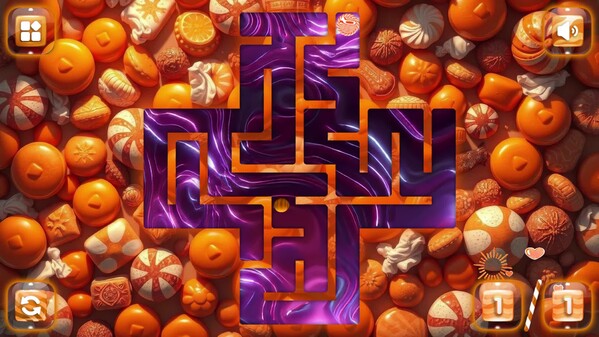 Dive into a vibrant candy world! Collect delicious sweets and find your way through playful orange mazes in this sweet and colorful adventure.