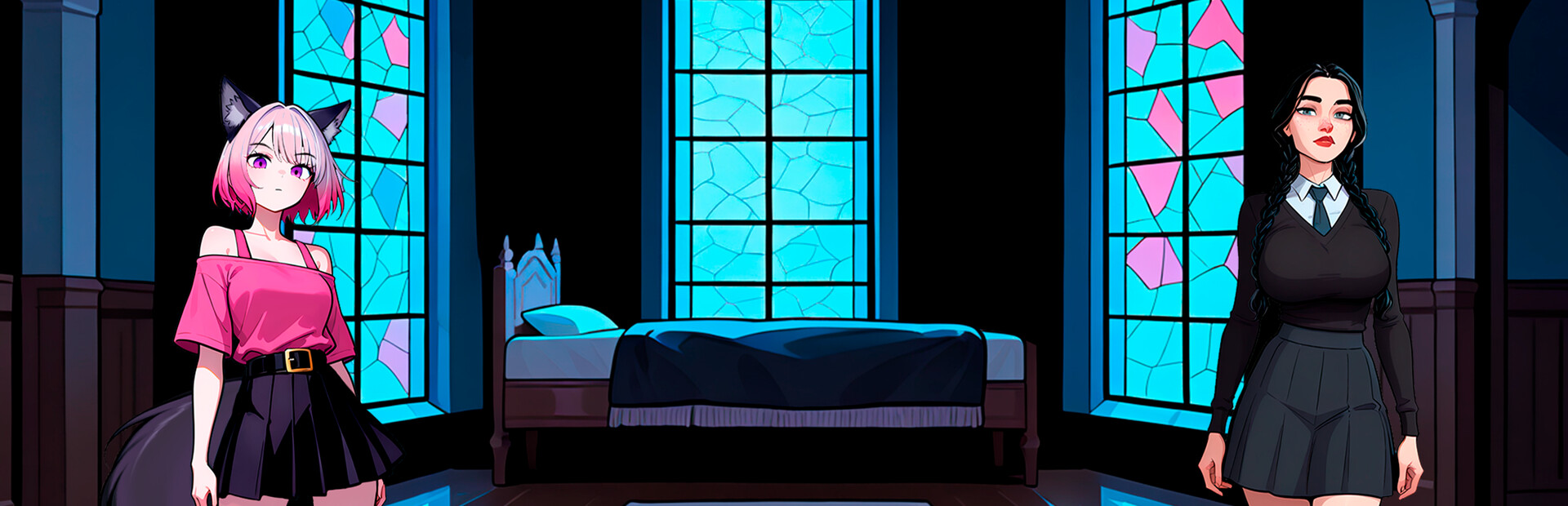 Hentai parody game and visual novel with turn-based battles. Explicit adult content: sex, violence, and inappropriate language. Fictional characters for humorous purposes.