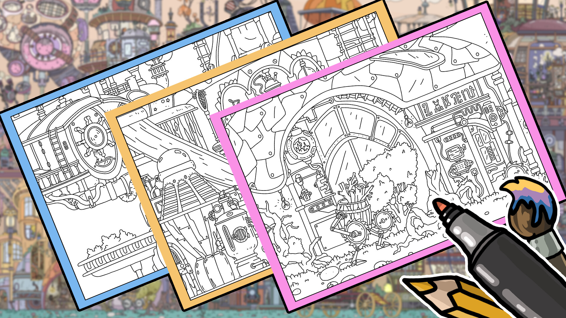 HIDDEN CATS 4: Aetherpunk - Coloring Book