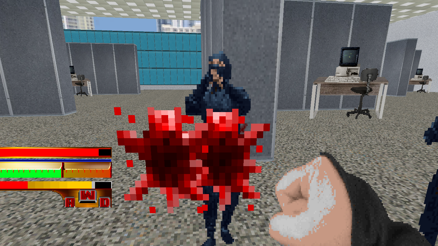 Sunset Street Ninja is a Action platformer/Fps beat em up, with semi nonlinear progression and with a hub world and retro style graphics.