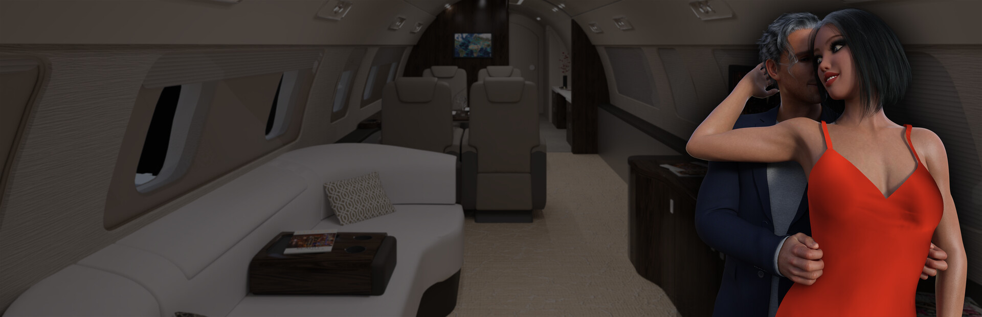 A simple SEX SIMULATION game with VISUAL NOVEL elements, featuring HD GRAPHICS and juicy ANIMATIONS. Damien and Lora take a private jet to an exotic location. A long flight becomes more pleasant once the two of them start fooling around and decide to join the mile high club by engaging in sex.