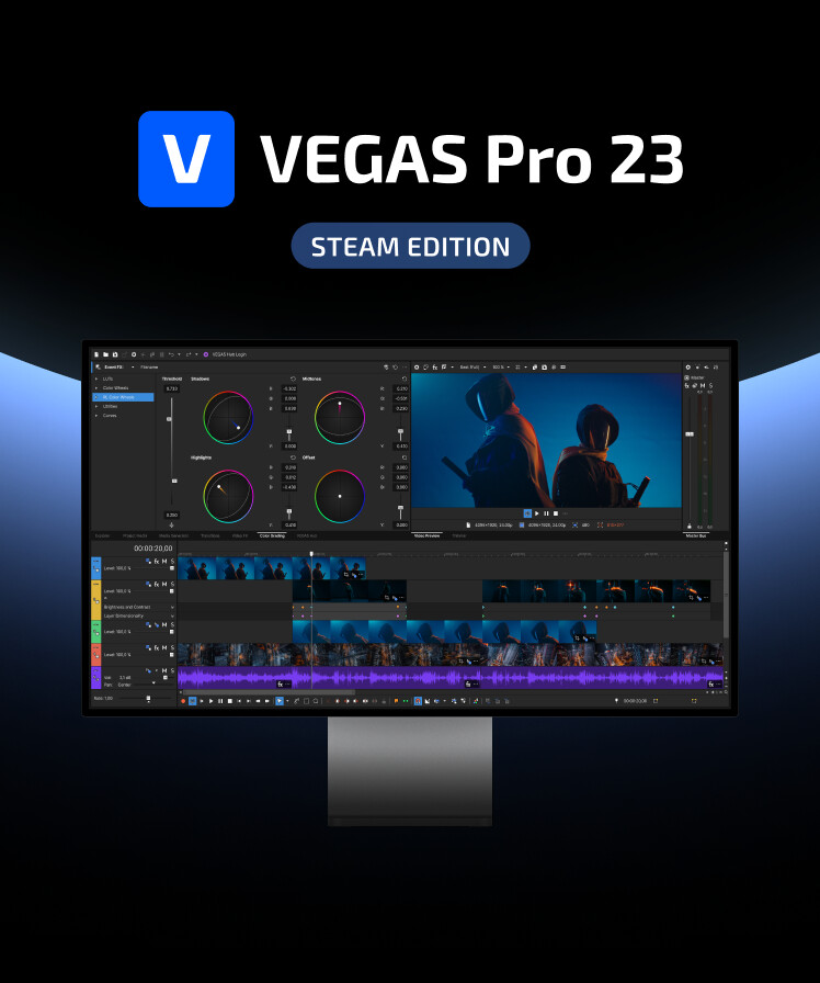 VEGAS Pro 23 Steam Edition - the video editing software that gives you full creative control. Enjoy smoother playback with the new VEGAS Core Engine, organize your media faster with the unified Explorer Window, and shape your sound with precision using the fully integrated Modern Equalizer.