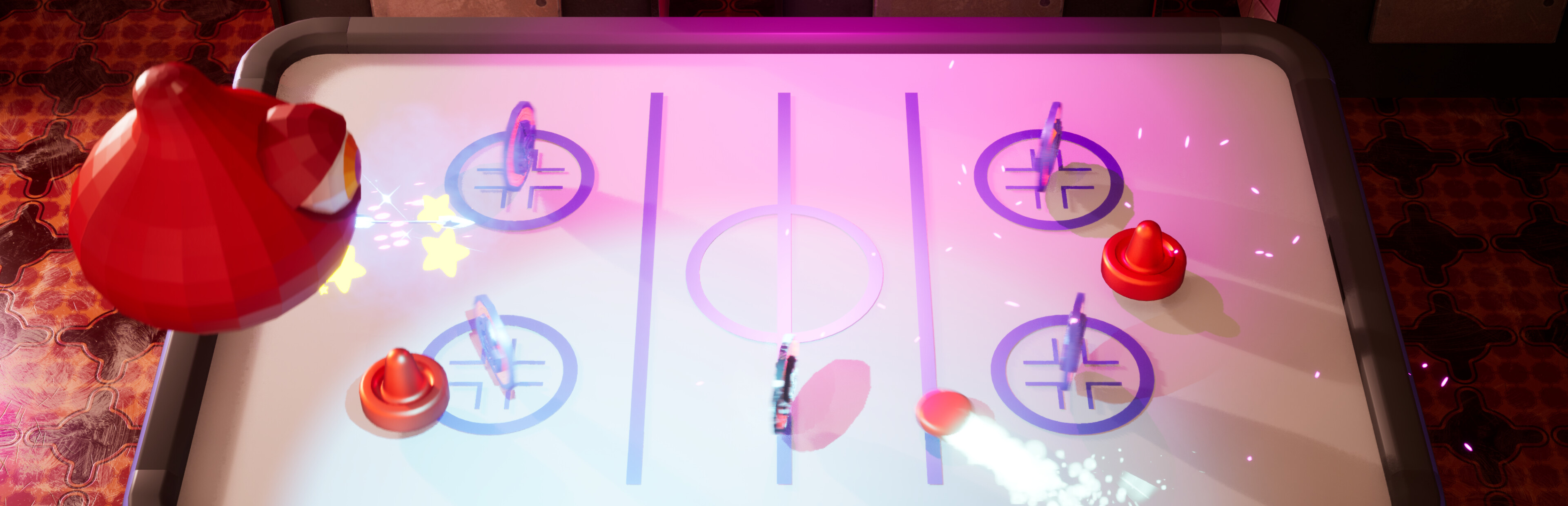 Neon-lit arcade action where Air Hockey × Shooter collide!? Unleash charge shots to take down your opponent! Play Solo (stage-clear) or 2-Player Versus. Rack up coins with every hit to upgrade your paddle and push into new stages. Fast, snappy matches that beg for “one more round”!