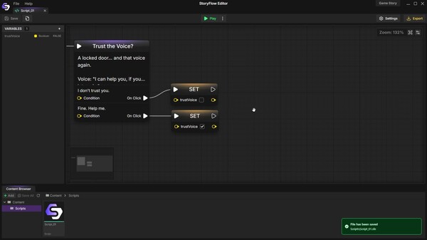 StoryFlow Editor is a visual node-based tool for designing branching narratives and dialogue systems for games. If you're building a narrative-heavy game and tired of juggling spreadsheets, docs, and text files, this is built for you. Export as HTML or JSON and use in Unity, Unreal Engine or Godot.