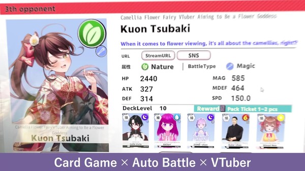VTuber Battle: It’s Not About Subscribers! It’s All About Power! is a card game combined with auto-battle mechanics! You can use over 100 VTubers as protagonists. Make your favorite VTuber the hero! Win battles, acquire even stronger cards, and aim to become the strongest!