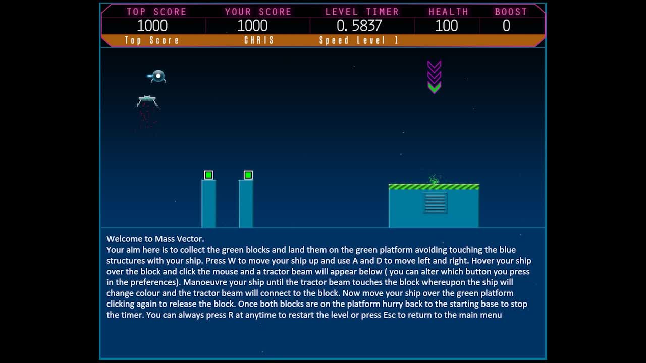 Mass Vector. A physics based game with 100 levels of challenging fun. 50 Speed levels played against the clock. 50 Hazard levels which are a real challenge of skill and stamina.