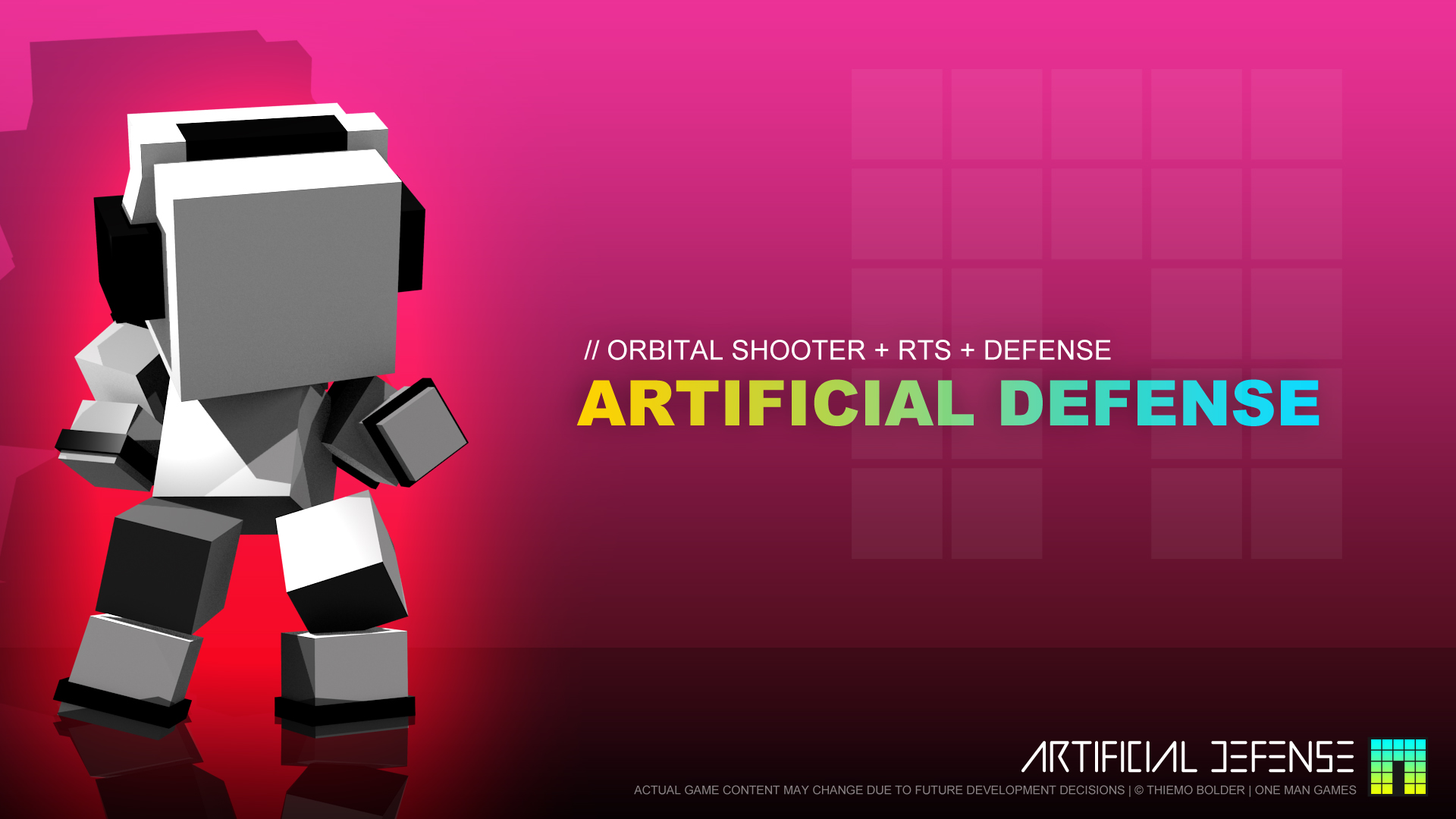 Artificial Defense is a one man made, real time strategy game combining orbital shooter and tower defense components within an electrifying, virtual reality setting. You are the machine, a mighty computer-system defending its servers against swarms of intruding creeps.