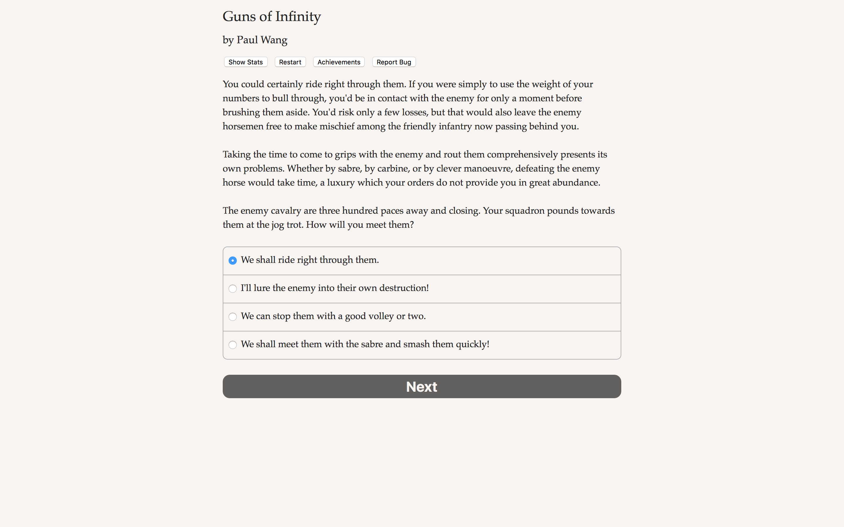 As commander of a squadron of cavalry, what will you sacrifice to win the war of gunpowder and magic? Fight for power, riches, love, or glory!