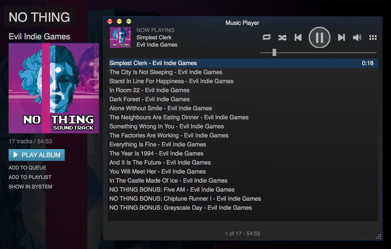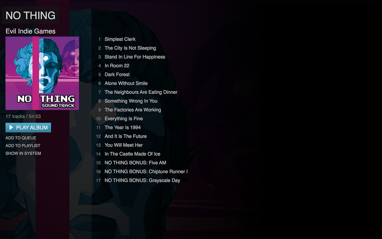 Soundtrack of NO THING game. The year is 1994 and it is the future.