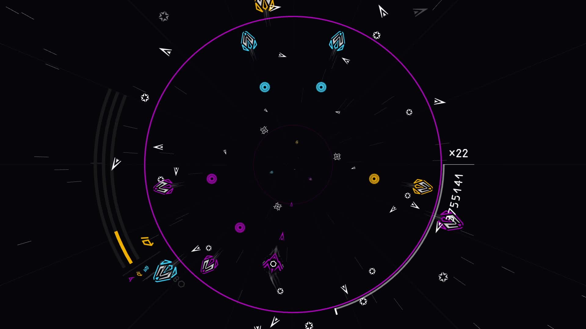 Outskirts is a colorful 360° bullet-hell with beautiful vector based art, interactive music and a deep combo system. Drive your ship through your foes and make your path to the leaderboard!