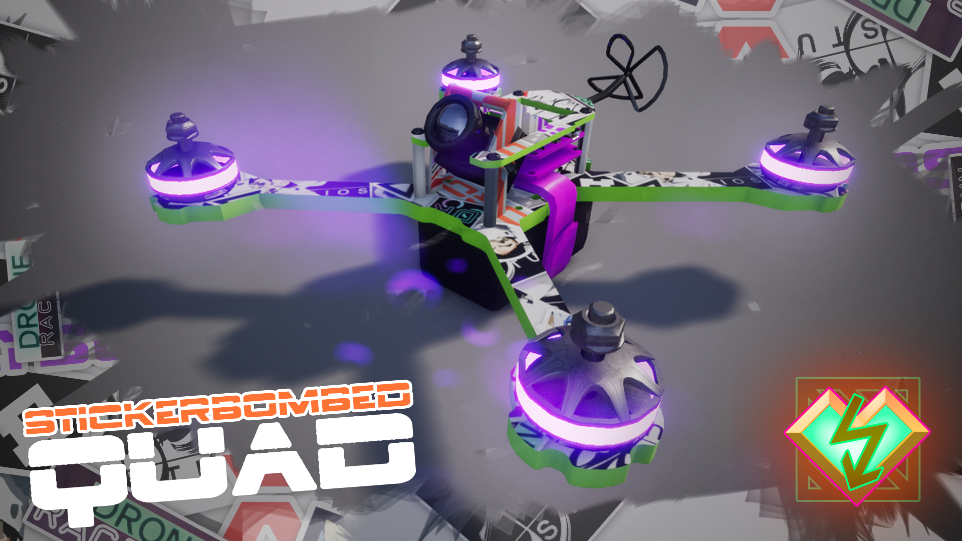 Unlock the "Sticker-Bombed" Quadcopter in single and multiplayer. Special name highlight and supporter icon where your lap-time appears. Show everyone your support for FPV Air Tracks!