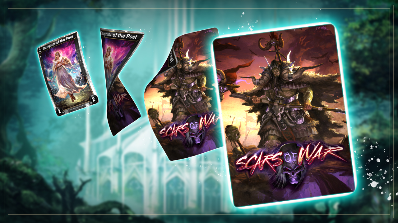 HEX: Scars of War BundleBUNDLE CONTENTS6x “Scars of War” Booster Packs1x Auto Defense Console Equipment1x Shroom Boom Equipment1x Fleetfoot Gloves Equipment1x Commonwealth Sandals Equipment1x Shroud of Shadows Equipment1x Hare Trimmed Helmet Equipment1x Ink-Stained Vestments Equipment1x Airweight Bounders Equipment1x Blossom of Friendship