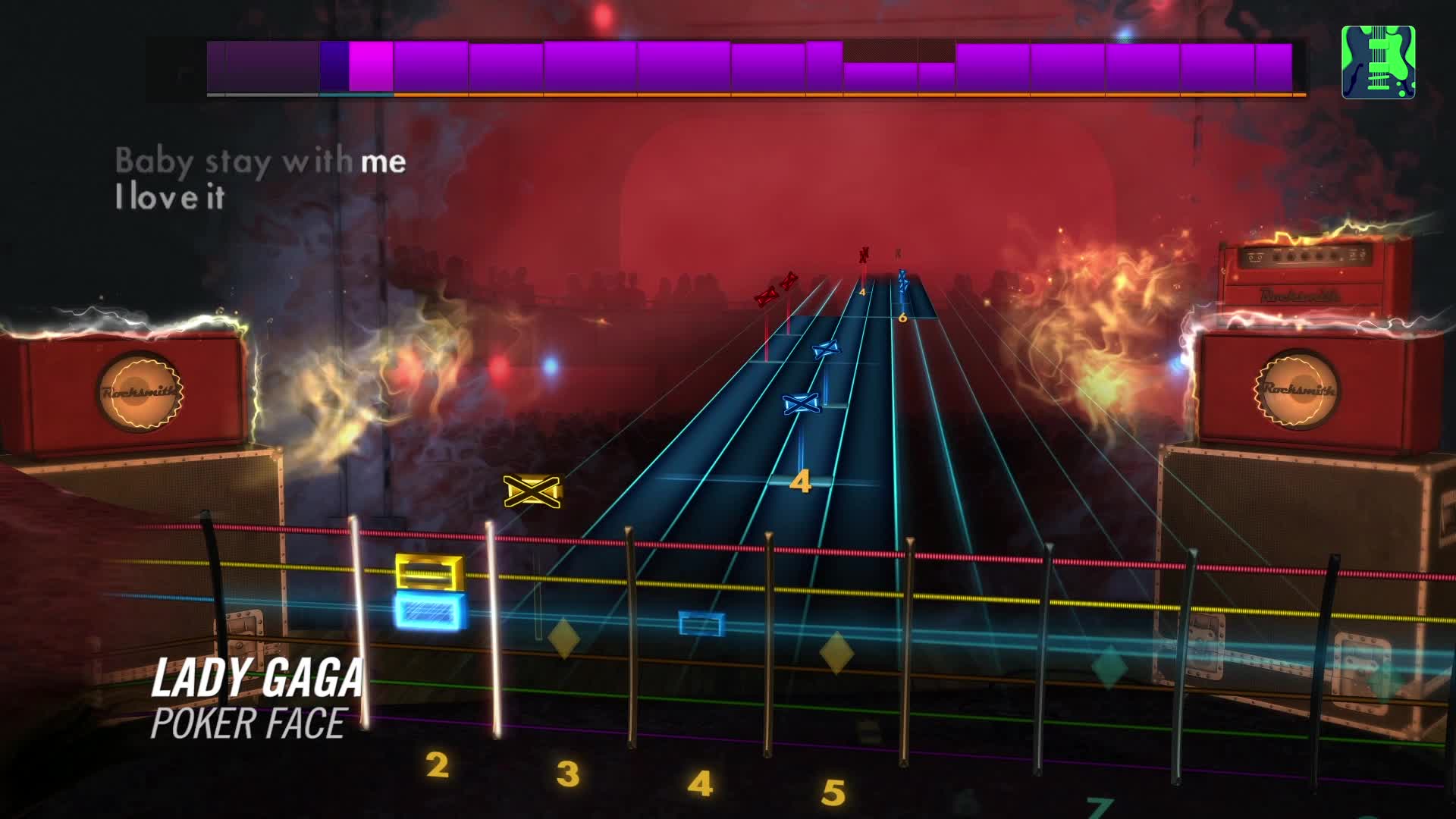 Play "Bad Romance", “Yoü and I”, “Poker Face”, and "Paparazzi" by Lady Gaga on any electric guitar or bass. Each song includes a new authentic tone.