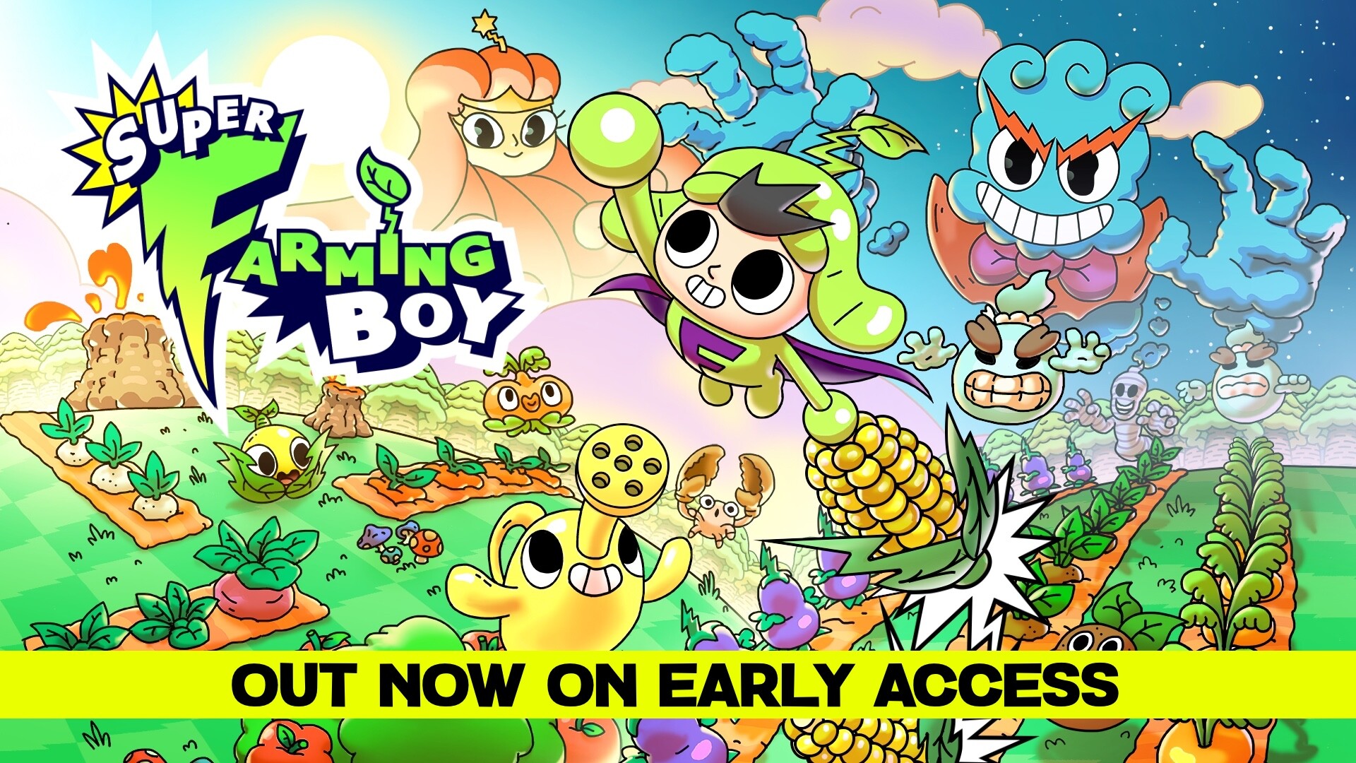 Your farm is under attack! Fly, harvest, grow crops & whack enemies with your shape-shifting one-button superpowers as you seek revenge from your evil nemesis, Korpo, who has captured your mom & friends! An action-puzzle farming sim featuring chain reactions and combos.