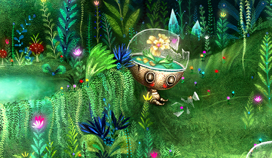 An adventure about a robot saving her home from a dark crystalline force. Set upon a biopunk space station bursting with fantastic plants and aliens.