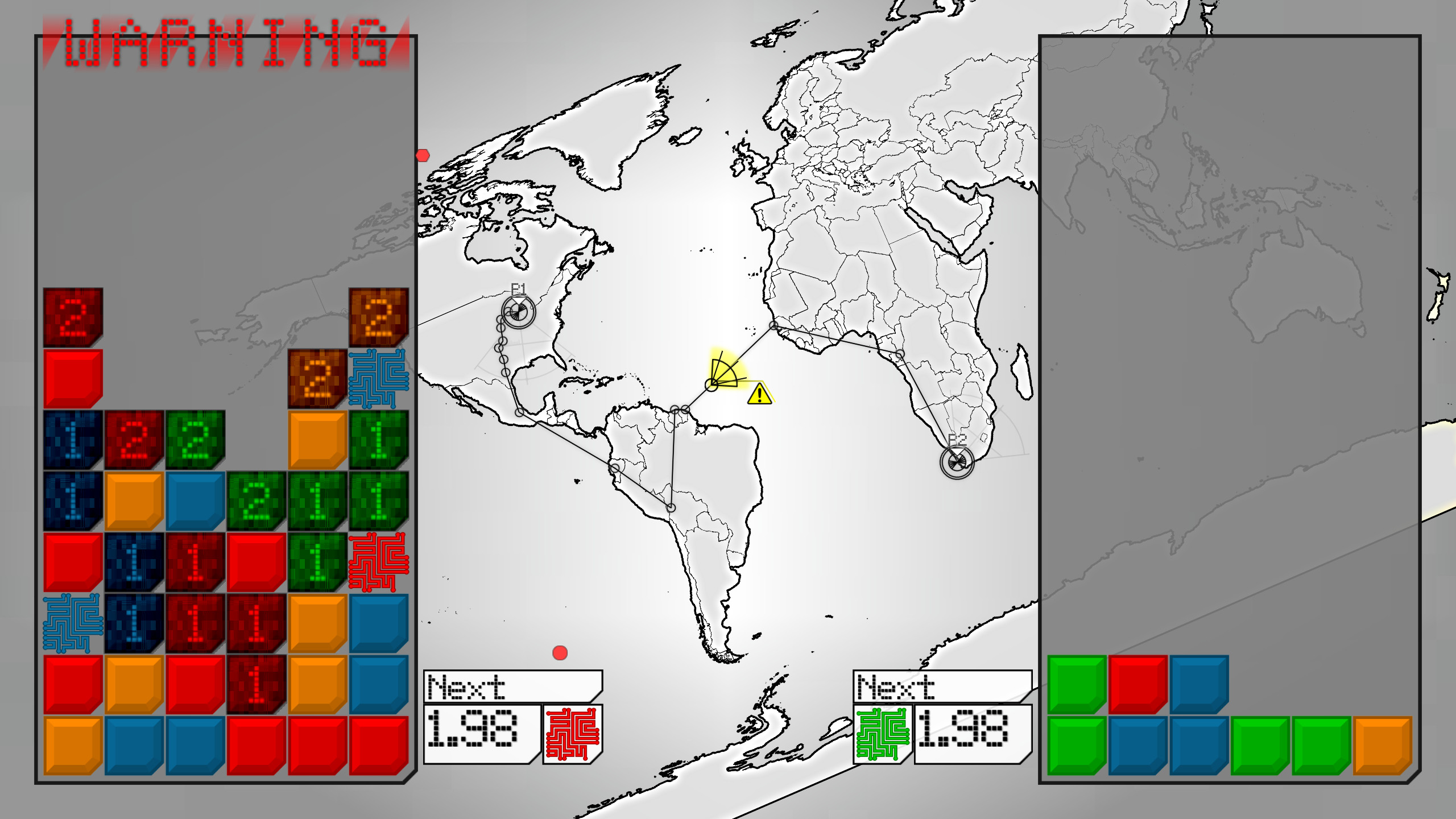 A world wide competition between hackers. Fast paced competitive puzzling. Keep your grid clear by using your deleters to destroy blocks. Crash your opponent's system by throwing blocks to them in the 2 player battle mode or take on the world, and the leader board, in marathon mode!